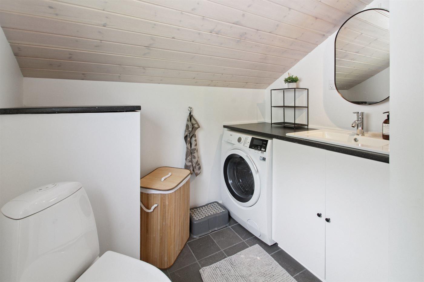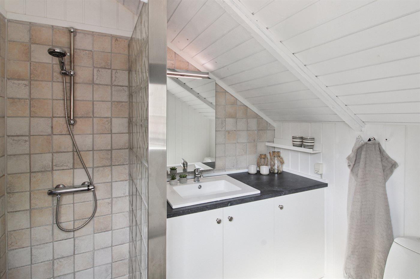 Der er 2 badeværelser med bruseniche og 2 toiletter. Der er gulvvarme på 1 badeværelse.