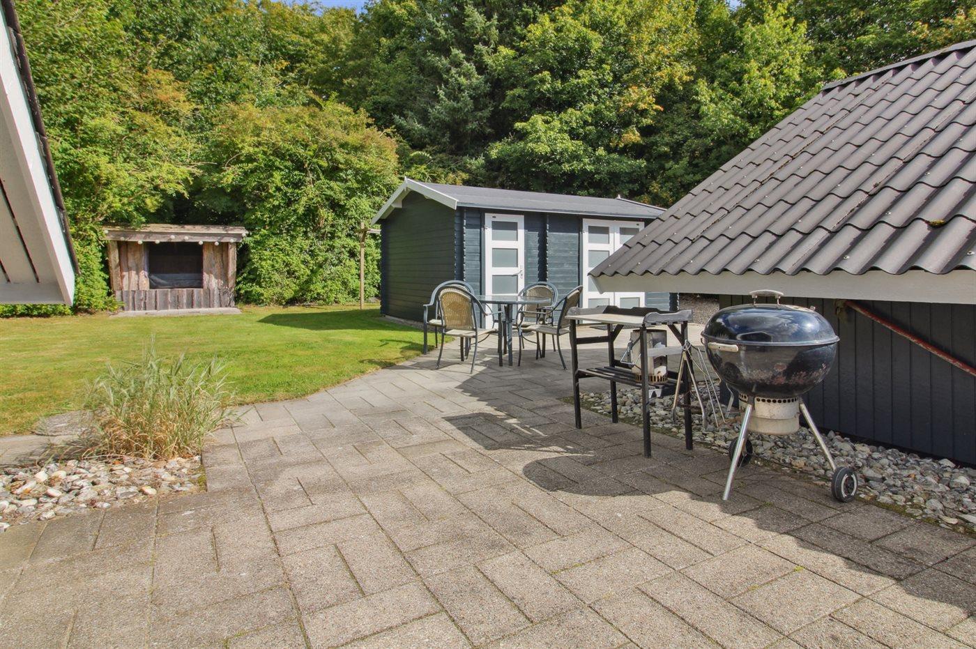 Ferieboligen er beliggende på en 875 m² stor naturgrund. Der er 30000 m til havet. Der er 20000 m til Vadehavet. Der er en sø i en afstand af 800 m. Nærmeste forretning er beliggende i en afstand af 500 m. Der er en golfbane i en afstand af 1000 m. Til ferieboligen hører åbent terrasseareal. Desuden er der overdækket terrasse. Legehus. Rutchebane. Der ligger en legeplads i en afstand af 800 m. Shelter. Udendørs bruser. Grill til rådighed. Parkering ved ferieboligen.