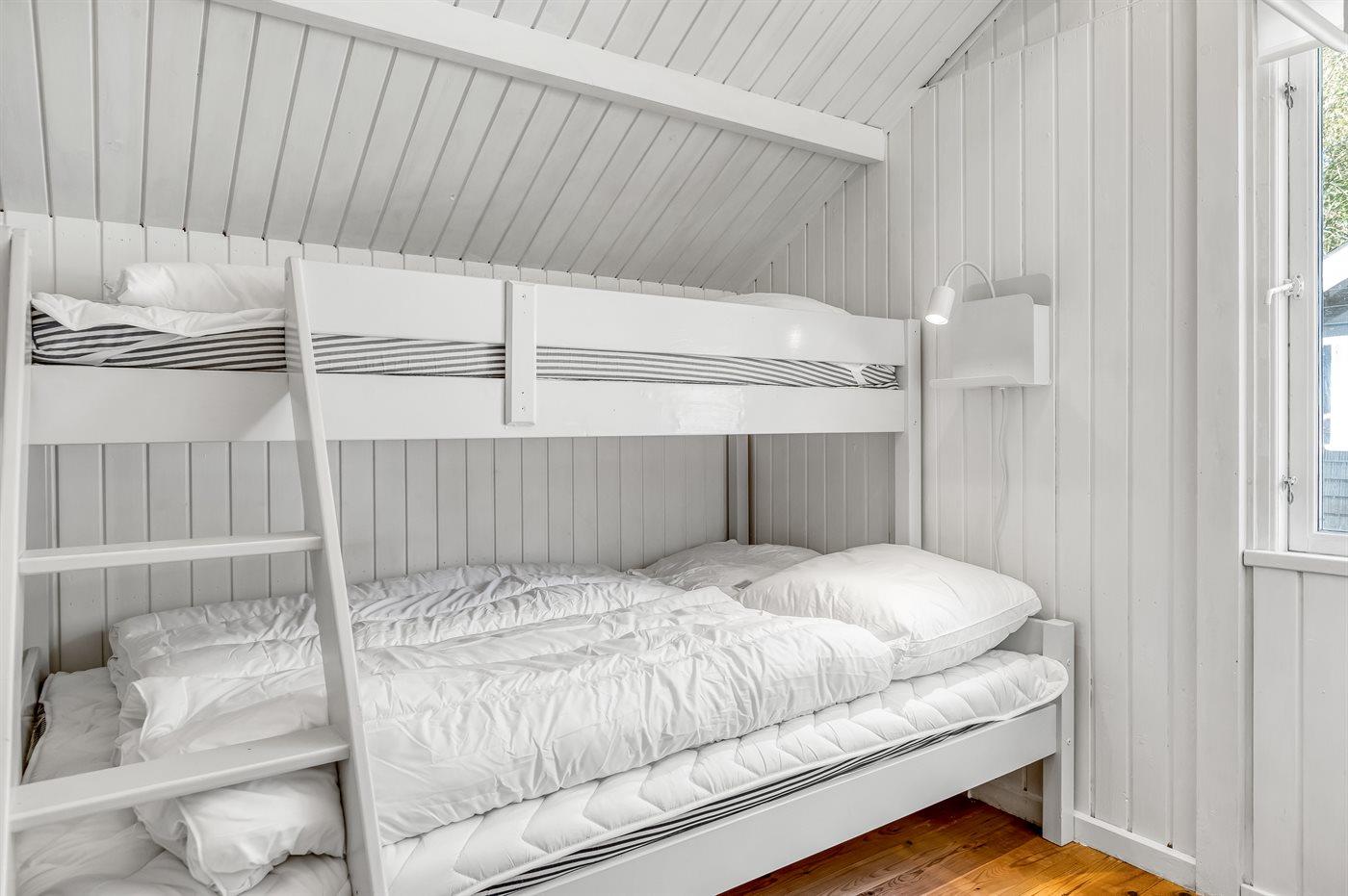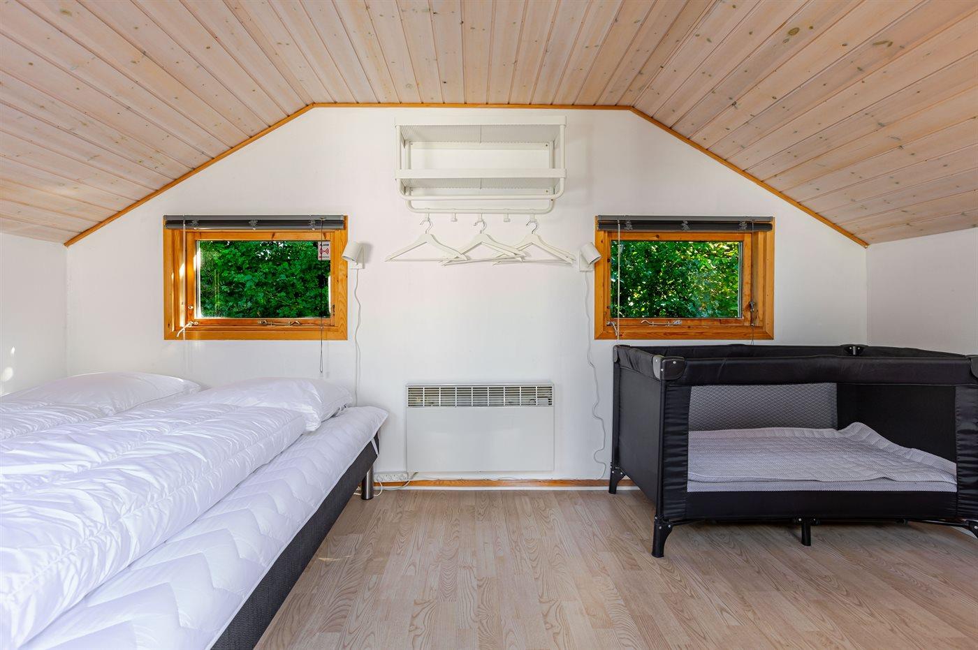 Der er i alt 3 soveværelser. Sovepladserne fordeler sig på: 4 sovepladser i dobbeltsenge. 2 sovepladser i køjeseng. 2 af disse sovepladser befinder sig i anneks. Derudover er der 1 stk. barneseng.