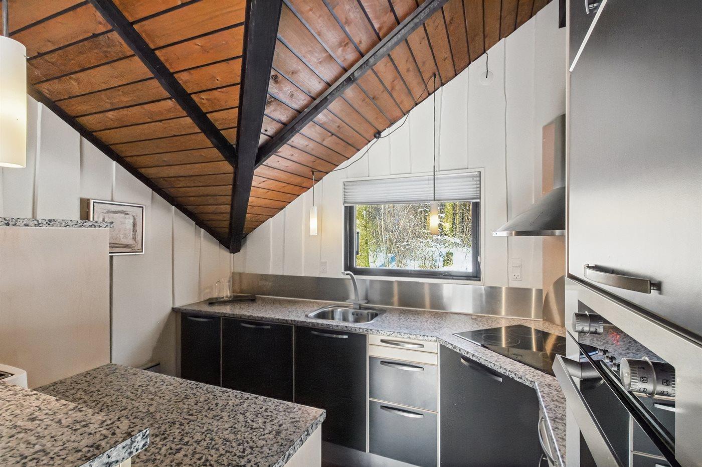 Køkkenet er udstyret med 1 køleskab. Der er 4 keramiske kogeplader, varmluftovn, mikrobølgeovn samt opvaskemaskine.