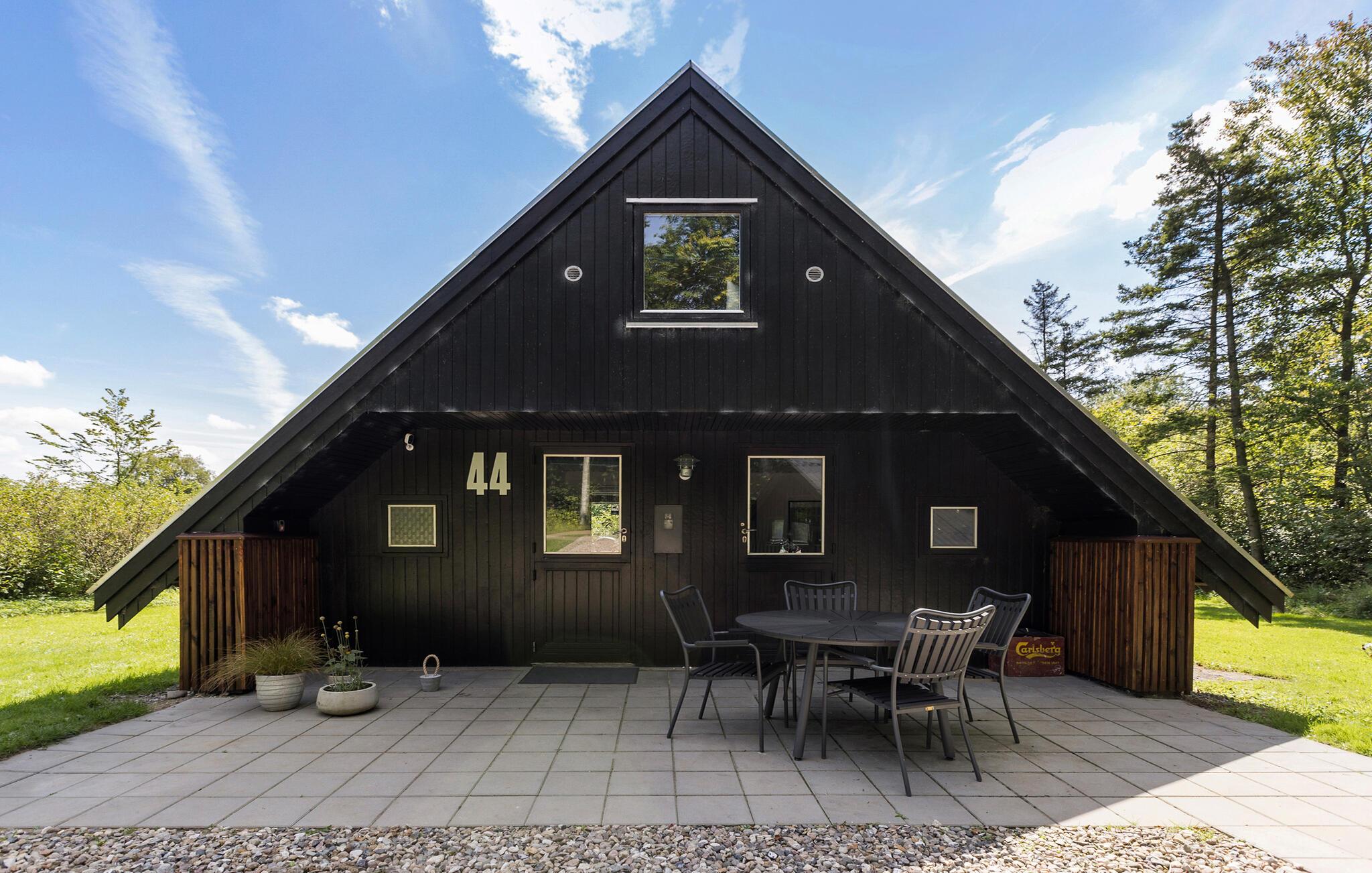 Er I på udkig efter et hyggeligt sommerhus til jeres næste familieferie, så er dette et godt bud. Her får I et hus, som har højt til loftet med hyggelige fritlagte bjælker og en moderne indretning. Lav lækre retter i det åbne køkken, og smid jer i sofaen med en god film på tv’et om aftenen. På køligere dage kan I skrue op for hyggen ved at tænde op i brændeovnen.