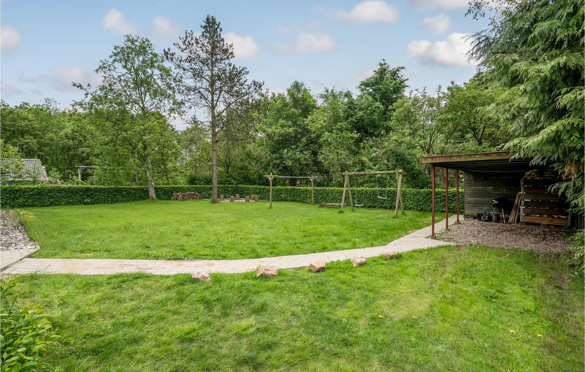 På den åbne terrasse med havemøbler kan du samles til hyggelige grillstunder om aftenen, mens børnene leger i haven.