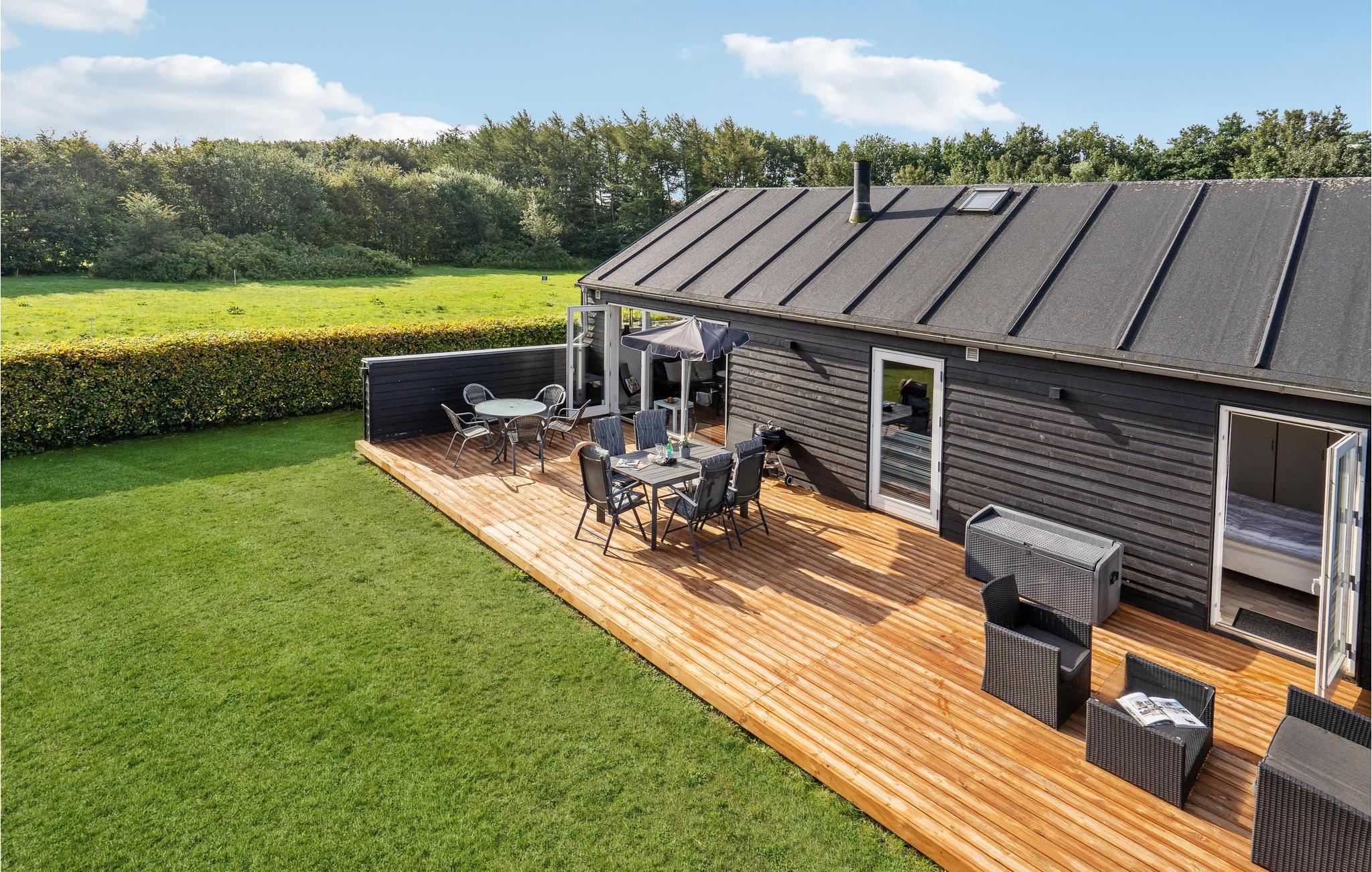 Indbydende feriehus i Arrild Ferieby med have, hems og brændeovn, perfekt til en afslappende familieferie.