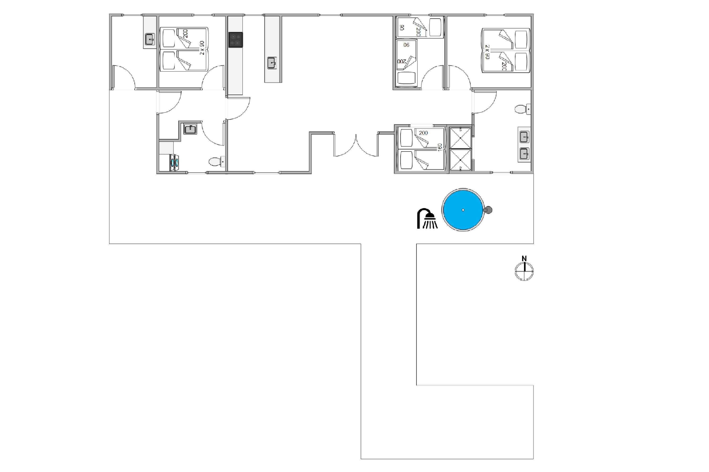 I sommerhuset finder I et stort badeværelse med dobbelt bruser og gulvvarme. Derudover er der et gæstetoilet, så køen ikke bliver lang til tandbørstningen. Også på gæstetoilettet er der gulvvarme. Feriehuset har både vaskemaskine og tørretumbler, så I kan vaske lidt tøj og håndklæder i løbet af ferien, hvis det skulle blive nødvendigt.