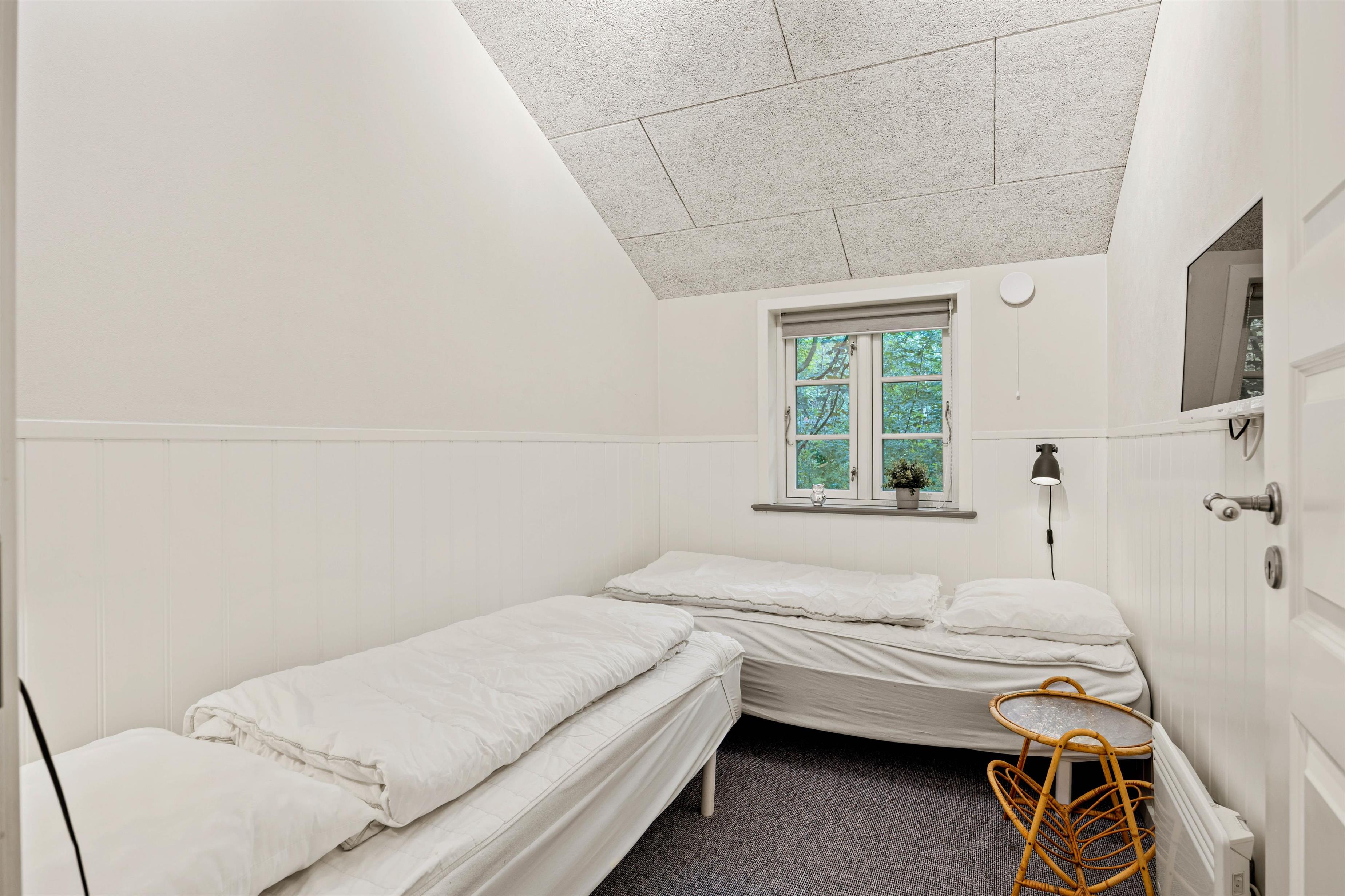 Til natten kan I fordele jer på de gode værelser, som der er 3 af i alt. De sidste 2 sovepladser finder I i alkoven, der ligger i forbindelse med alrummet.