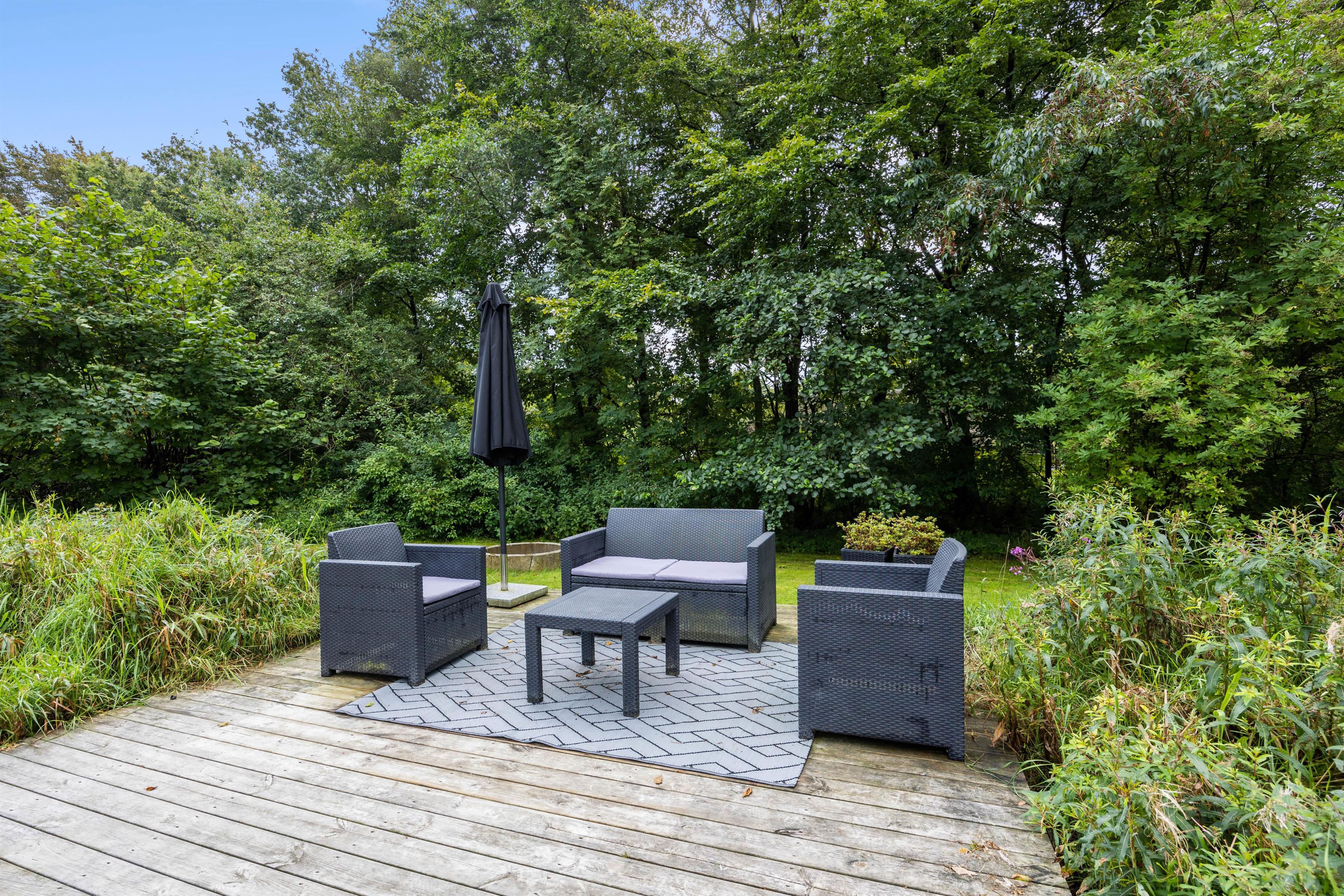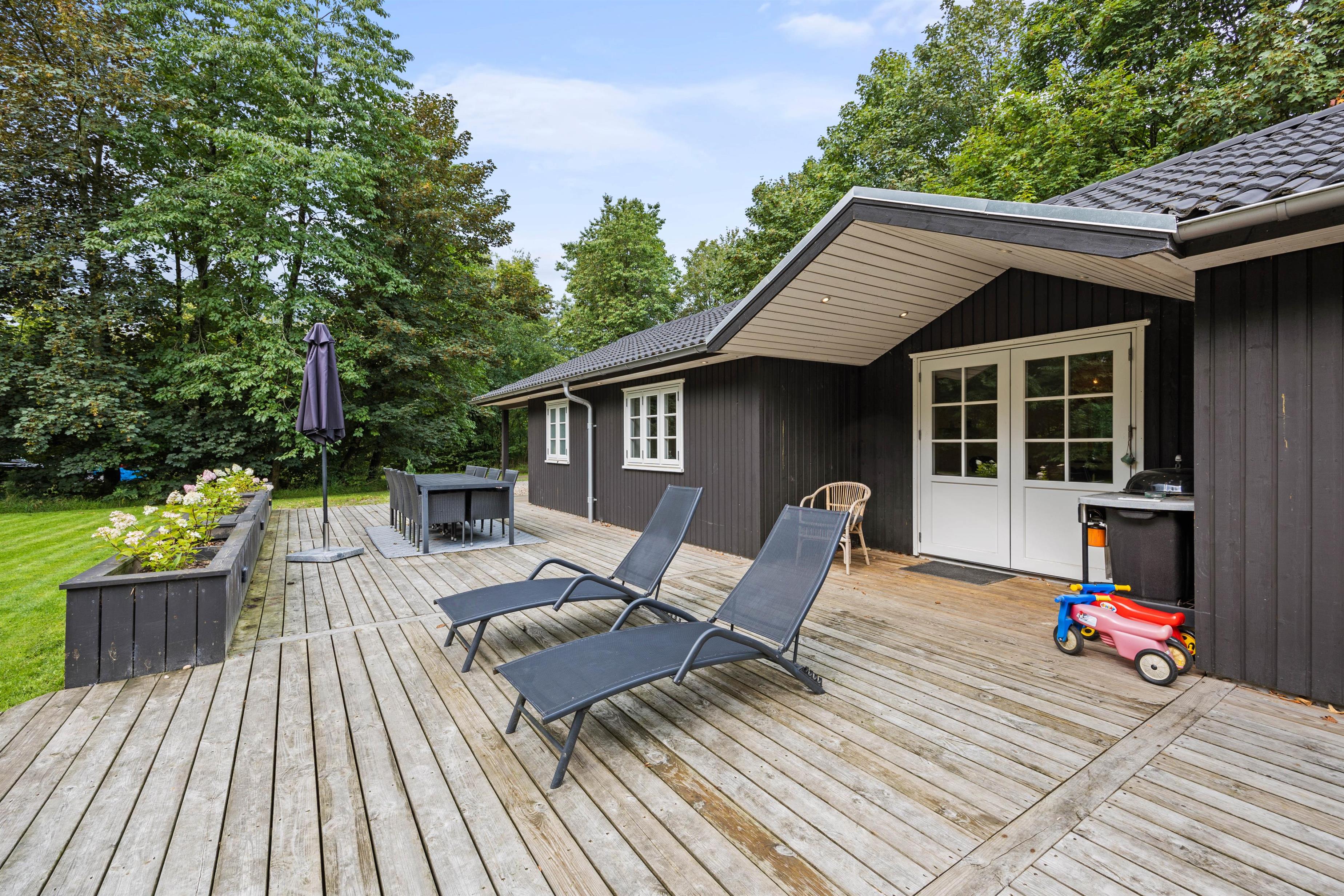 Skøn plænegrund med stor terrasse og vildmarksbad