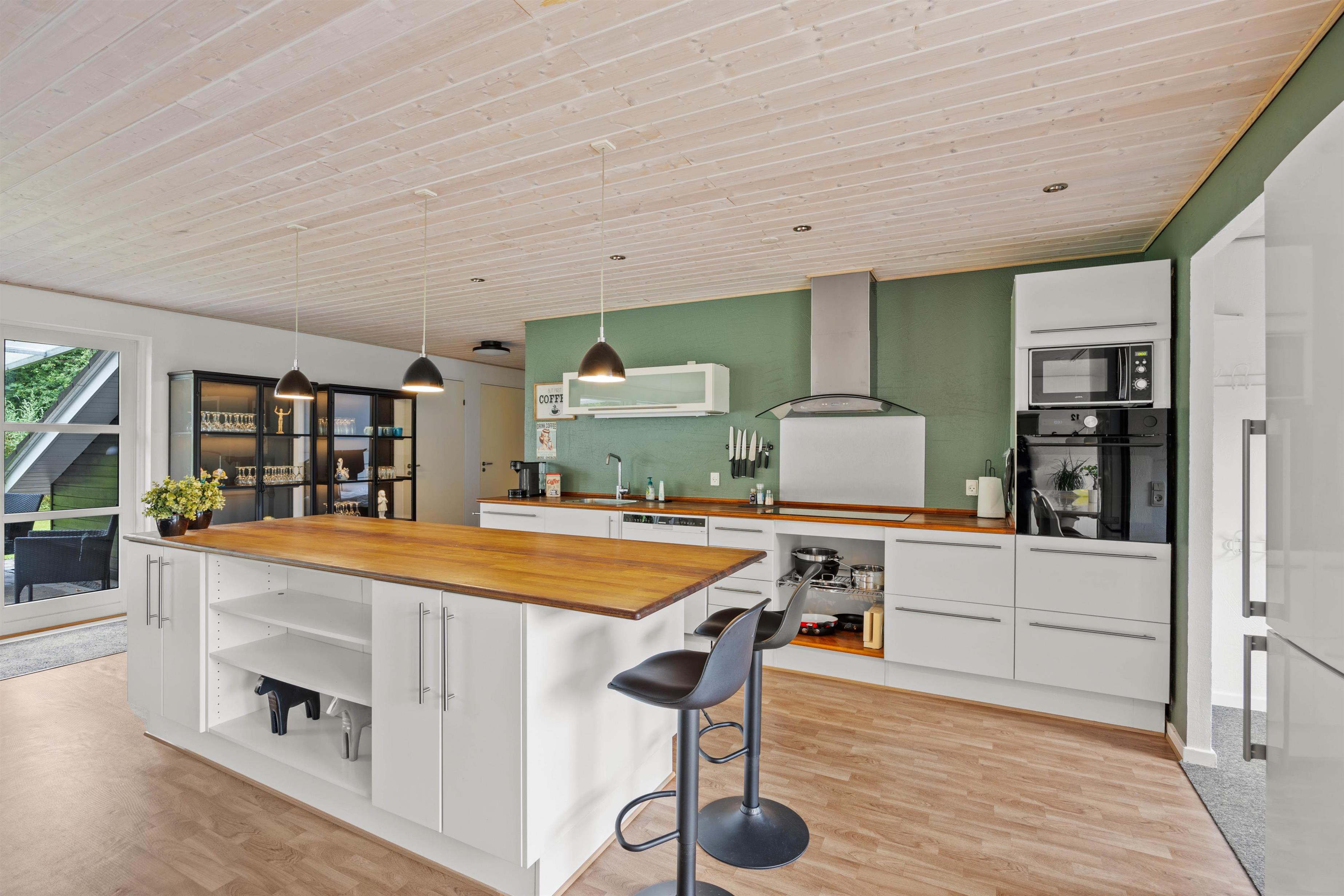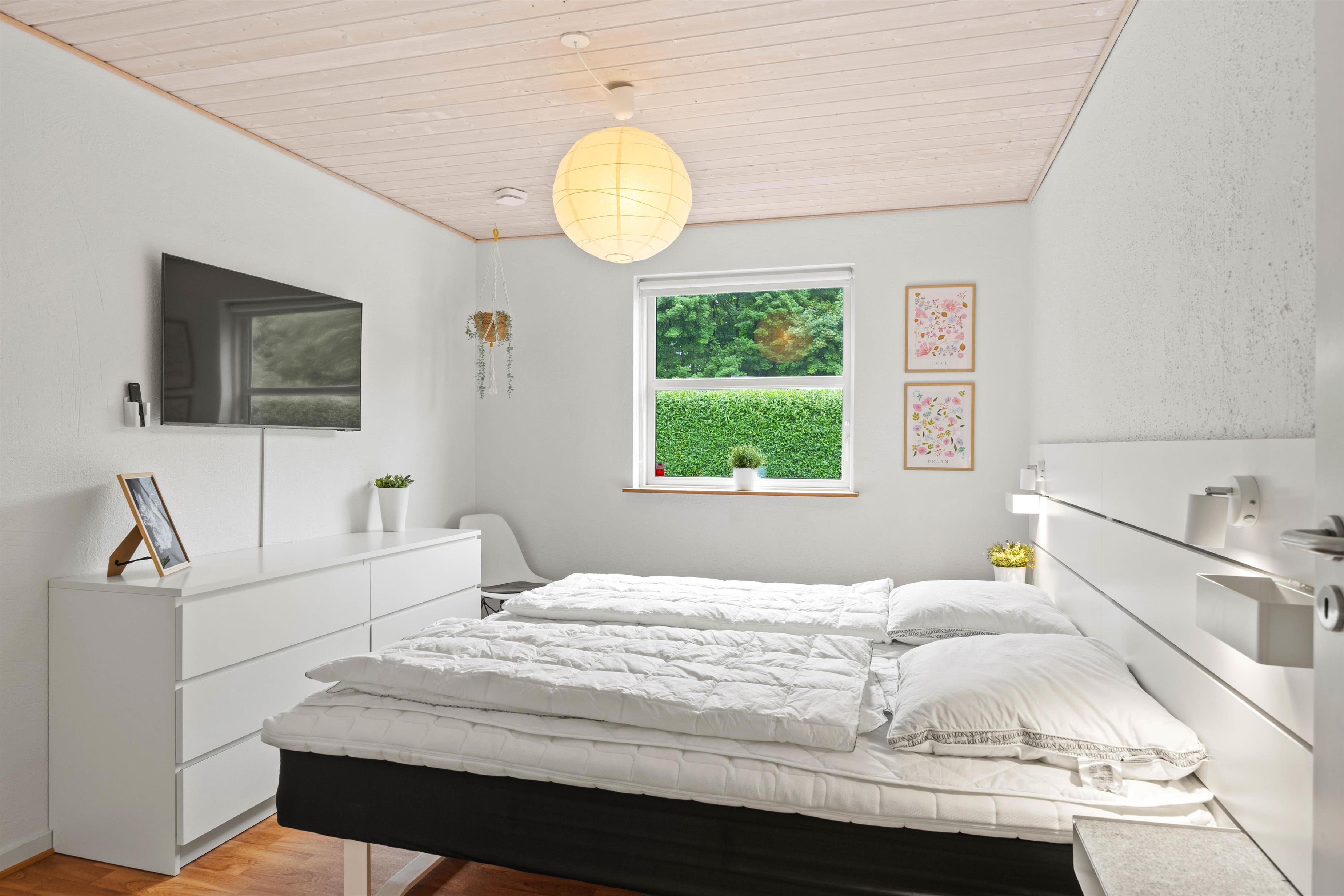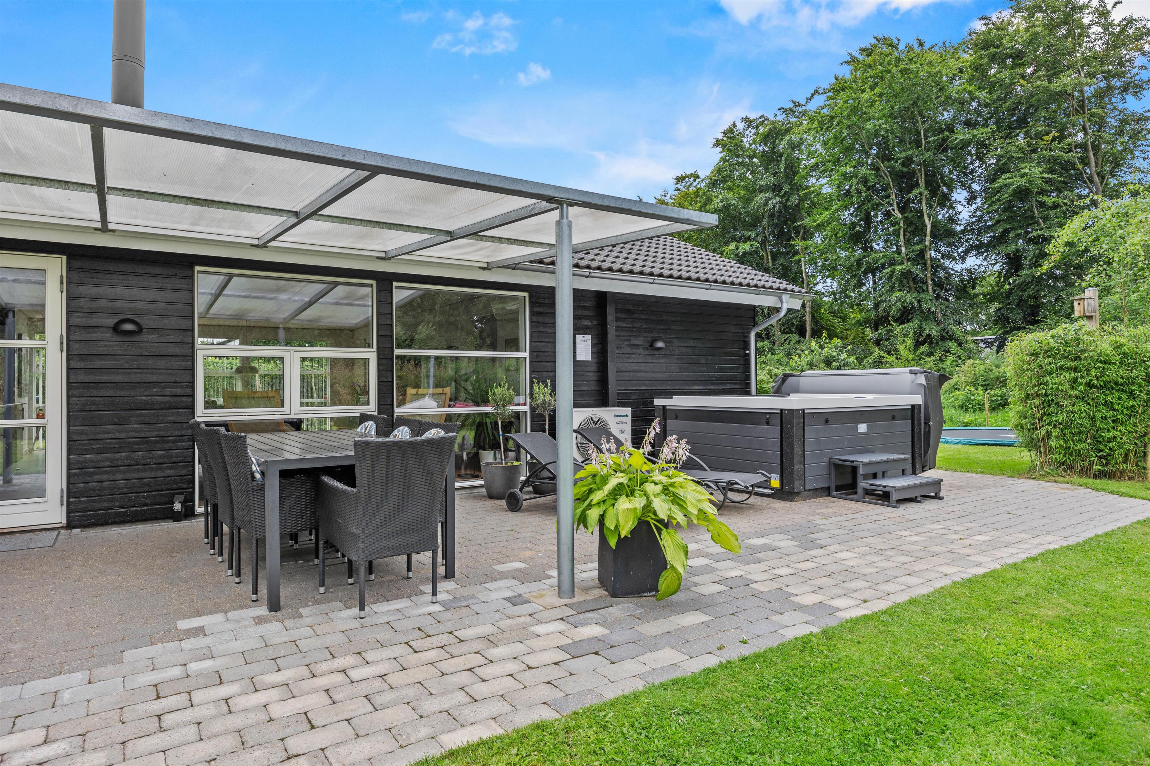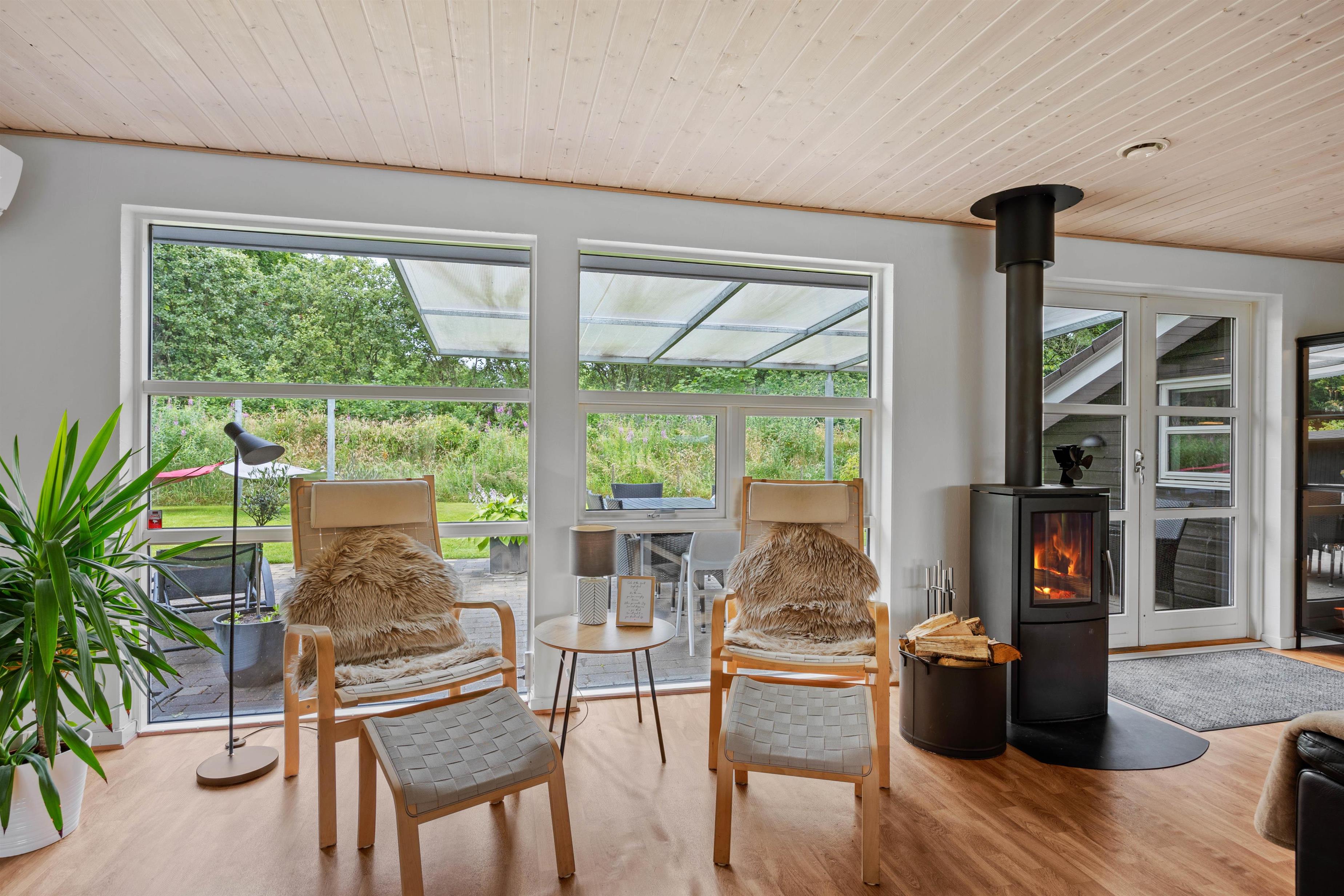 Når du træder ind, mærker du straks den varme og indbydende atmosfære. Den renoverede opholdsstue fra 2023 kombinerer moderne elegance med klassisk dansk hygge. Brændeovnen skaber rammerne for hyggelige aftener, mens den integrerede varmepumpe sørger for behagelig temperatur året rundt. De to moderne badeværelser med gulvvarme gør, at du starter hver dag med komfort og velvære. Som en særlig luksus har sommerhuset også et udendørs spabad, hvor du kan nyde afslappende stunder under åben himmel.
