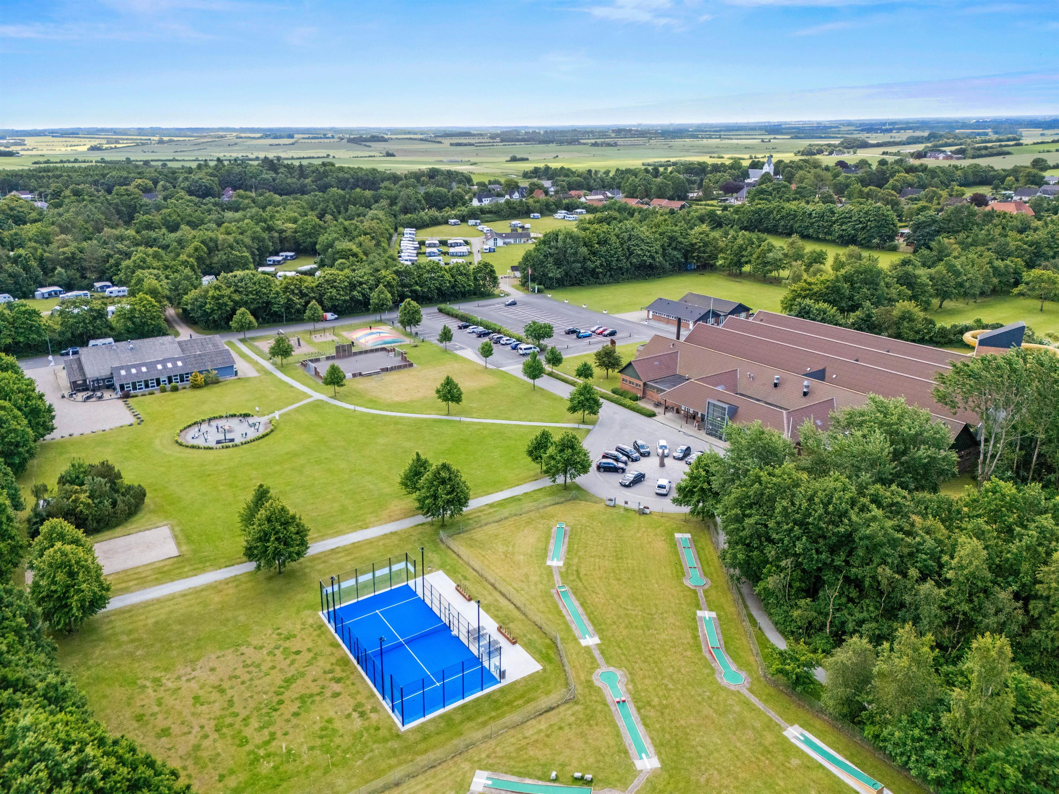 Sommerhuset ligger kun 1 km fra indkøbsmuligheder, så det er nemt at handle det, I har brug for. I området er der masser af aktiviteter: Besøg svømmehallen, tag en tur på tennisbanen eller lad børnene boltre sig på legepladser med bl.a. hoppeborg. To hunde er tilladt, så også familiens firbenede medlemmer kan nyde ferien.