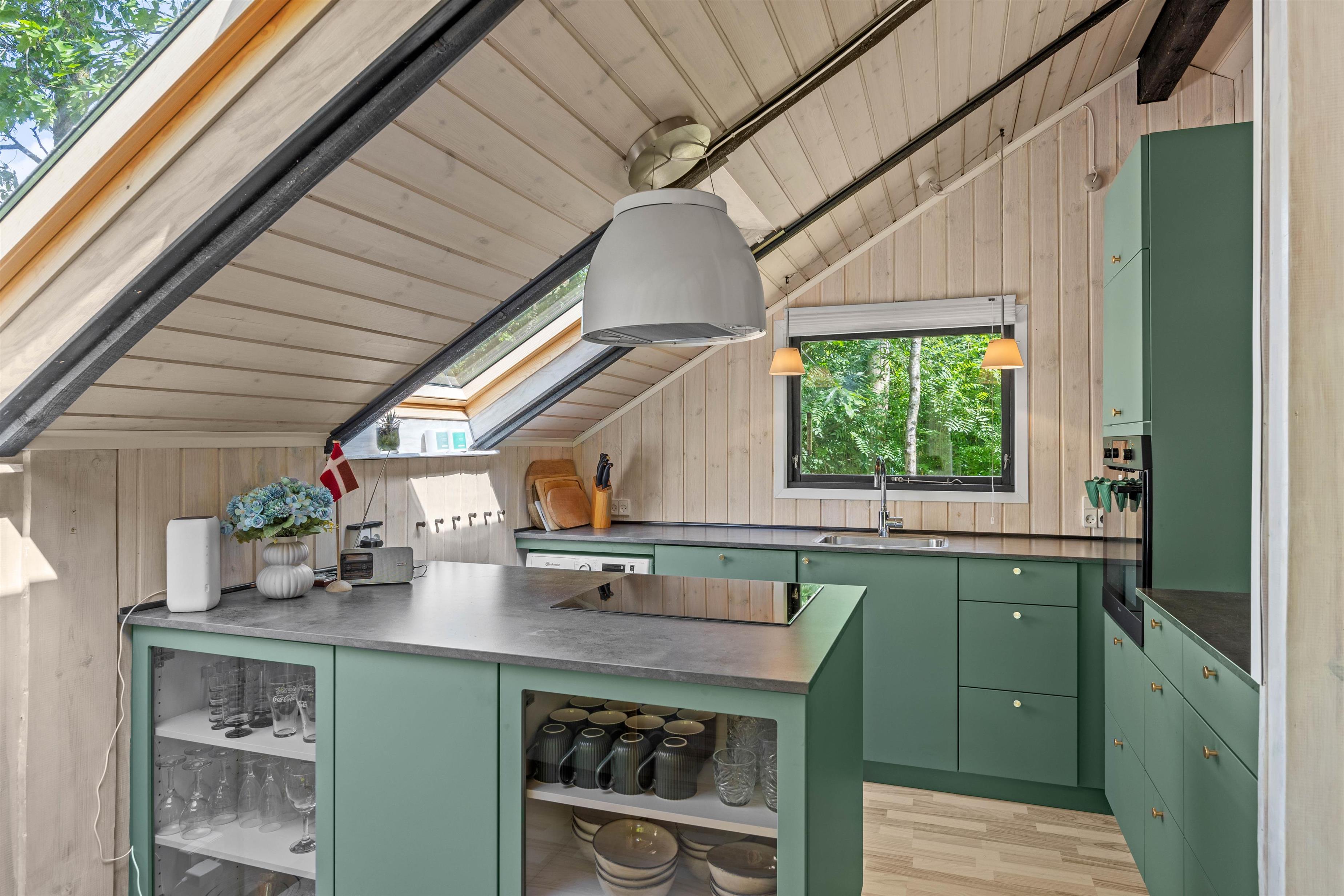 Køkkenet er fuldt udstyret og et sted, hvor madlavning er en fornøjelse – med opvaskemaskine, moderne komfur og en hyggelig spisekrog til fælles måltider. Den moderne varmepumpe sørger for behagelig varme, mens gulvvarmen på badeværelset giver ekstra komfort. Og med parabolantenne samt gratis Wi-Fi er I godt underholdt – hvis I ønsker det.