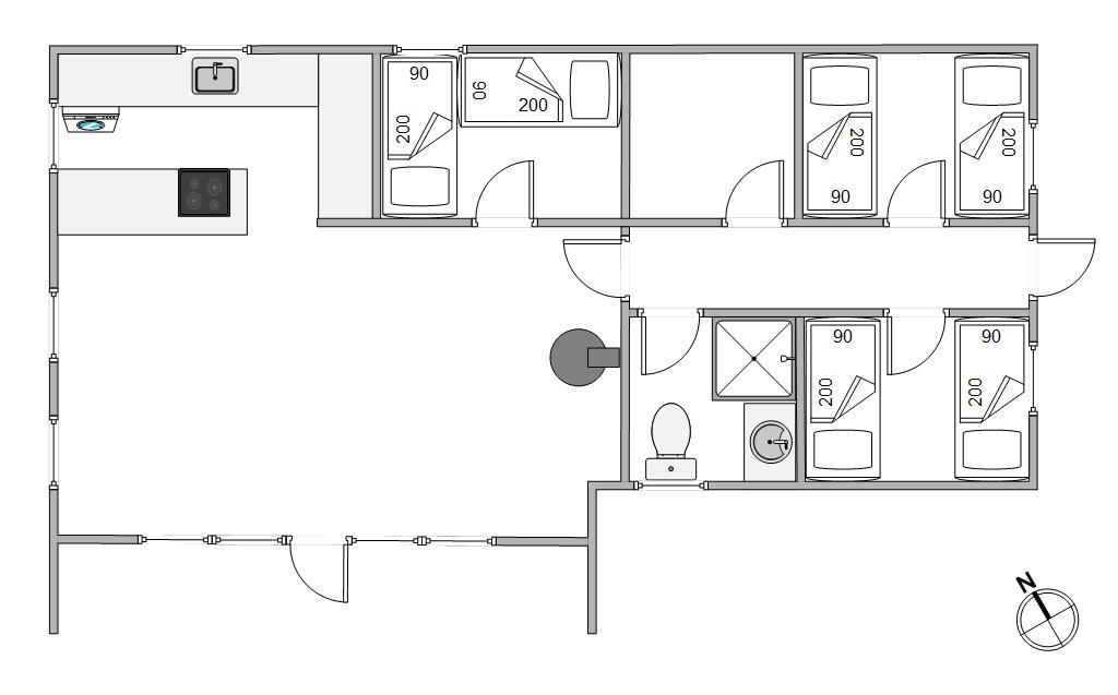 På 65 hyggelige kvadratmeter finder I alt, hvad feriegæsten kan ønske sig. Feriehuset, kærligt moderniseret og dog fuld af karakter, har plads til op til seks personer. Tre soveværelser med komfortable enkeltsenge tilbyder rolige nætter – omgivet af duften af træ og naturens stilhed. I stuen knitrer brændeovnen på kølige aftener og skaber en atmosfære, hvor man nemt glemmer tiden – med en god bog, et glas vin eller blot hyggeligt samvær.