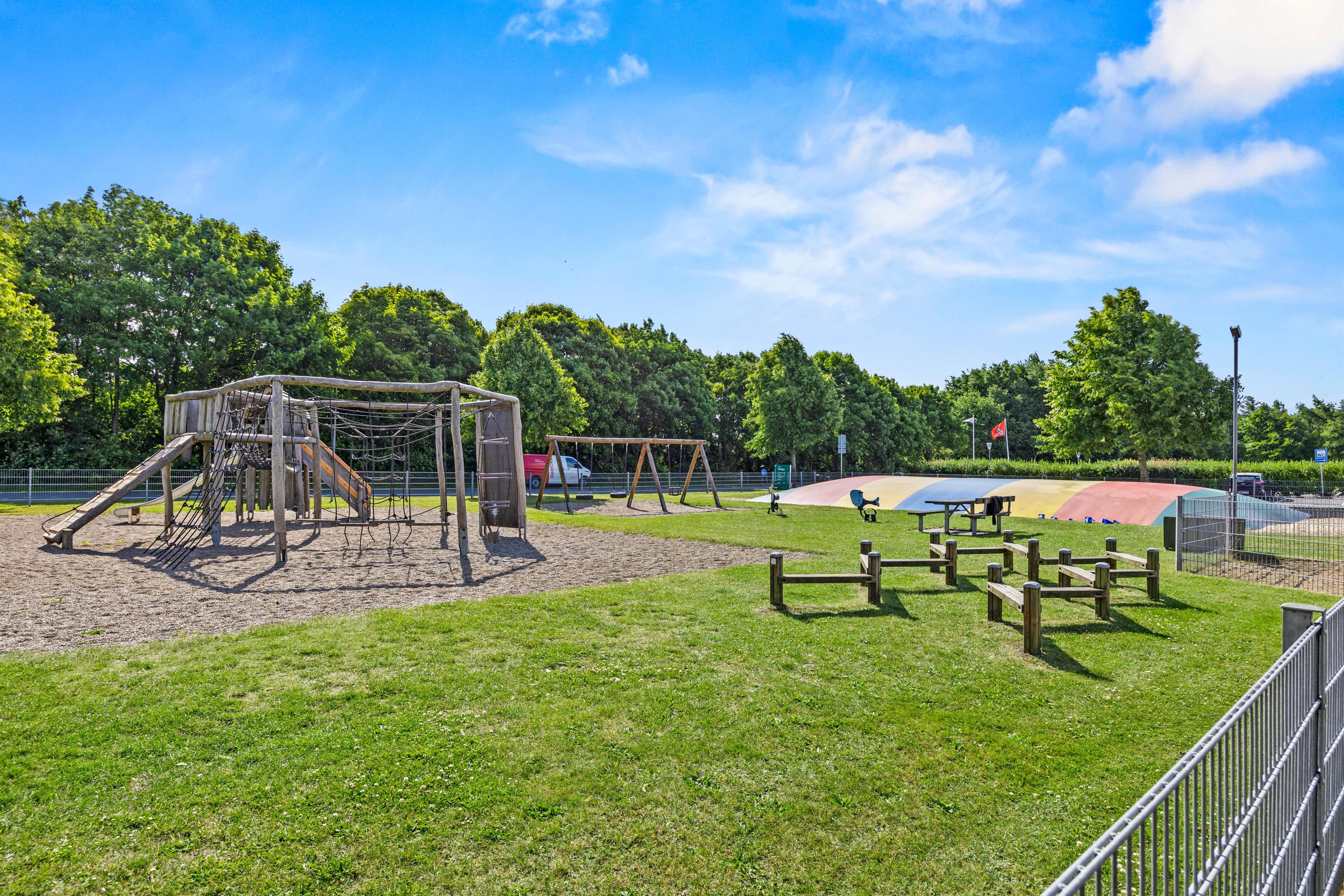Den store græsplæne omkring jeres feriehus er en grøn oase til leg, boldspil eller blot til at nyde solen. På den åbne terrasse med komfortable havemøbler og grillplads kan I nyde de lune sommeraftener med et glas vin eller en skøn BBQ. Lad sjælen slappe af, mens I lytter til fuglenes sang fra liggestolene – eller løft blikket mod det strålende stjernetæppe over jer om natten. Herude synes himlen at være lidt tættere på.