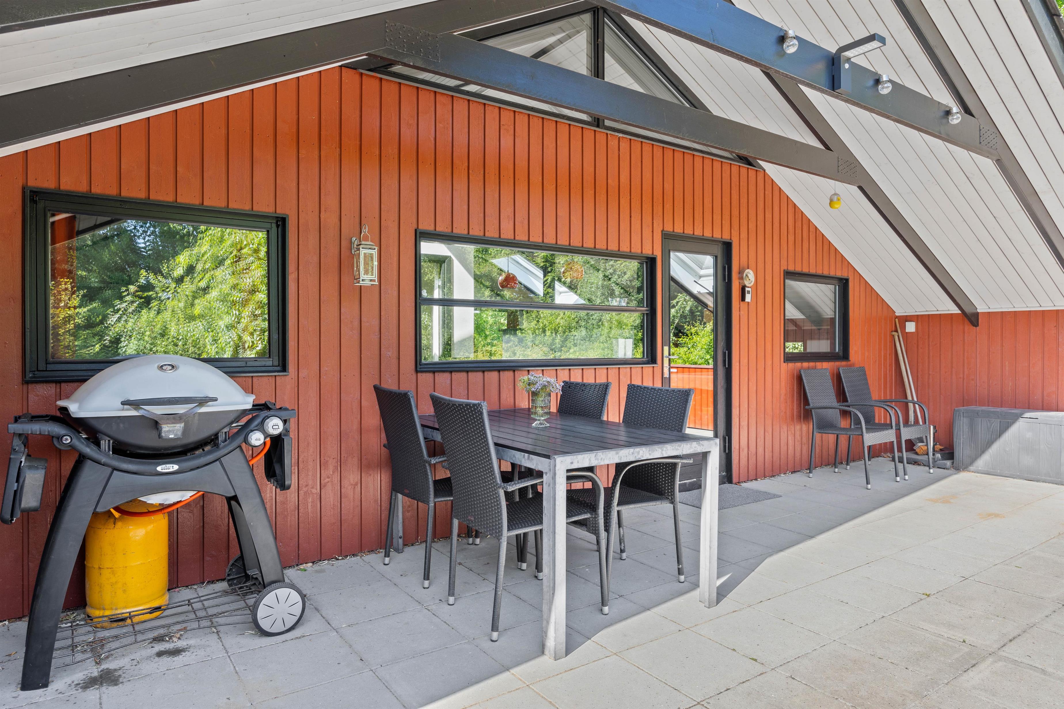 Et særligt træk ved dette feriehus i Arrild er den delvist overdækkede samt lukkede terrasse, som giver privatliv og ly for vejret, så I kan nyde den friske luft og naturen, selv når vejret ikke viser sig fra sin bedste side. Det dejlige udendørsområde er perfekt til at nyde måltiderne sammen på lune sommerdage, spille eller blot slappe af, mens hundene trygt kan gå frit rundt.