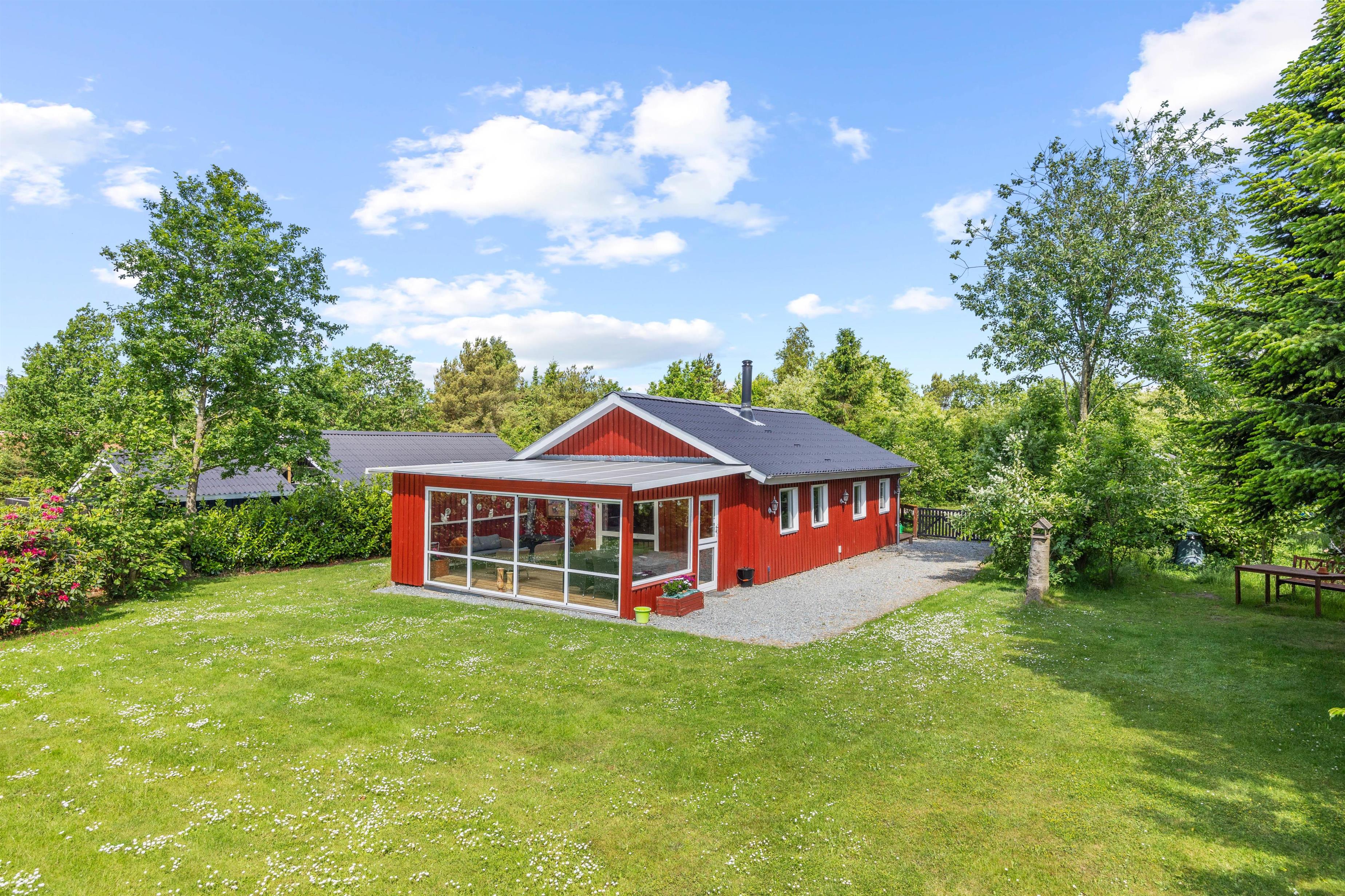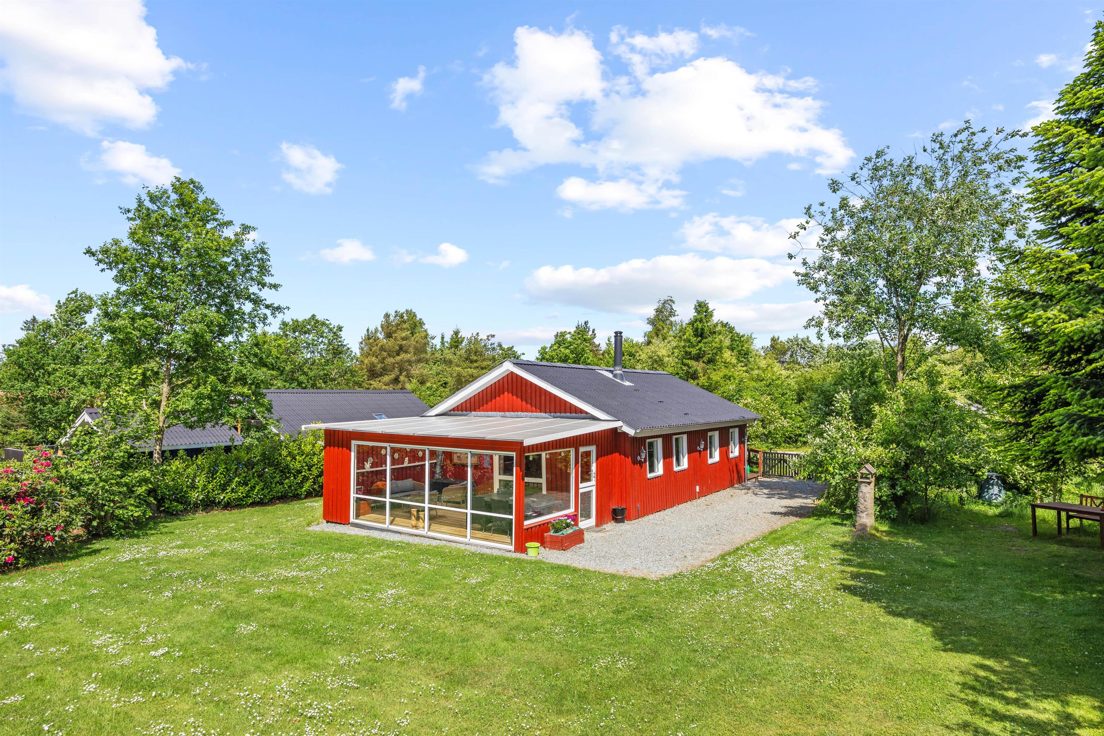 Et højdepunkt ved feriehuset er terrassen, der selvfølgelig skal nydes på de lune sommerdage. Havemøblerne står klar. Her kan I dase i solen, spille kort eller planlægge udflugterne. Skønt er her også en fin grøn græsplæne, der indbyder til aktiviteter for store som små. Måske hele familien skal spille kongespil?