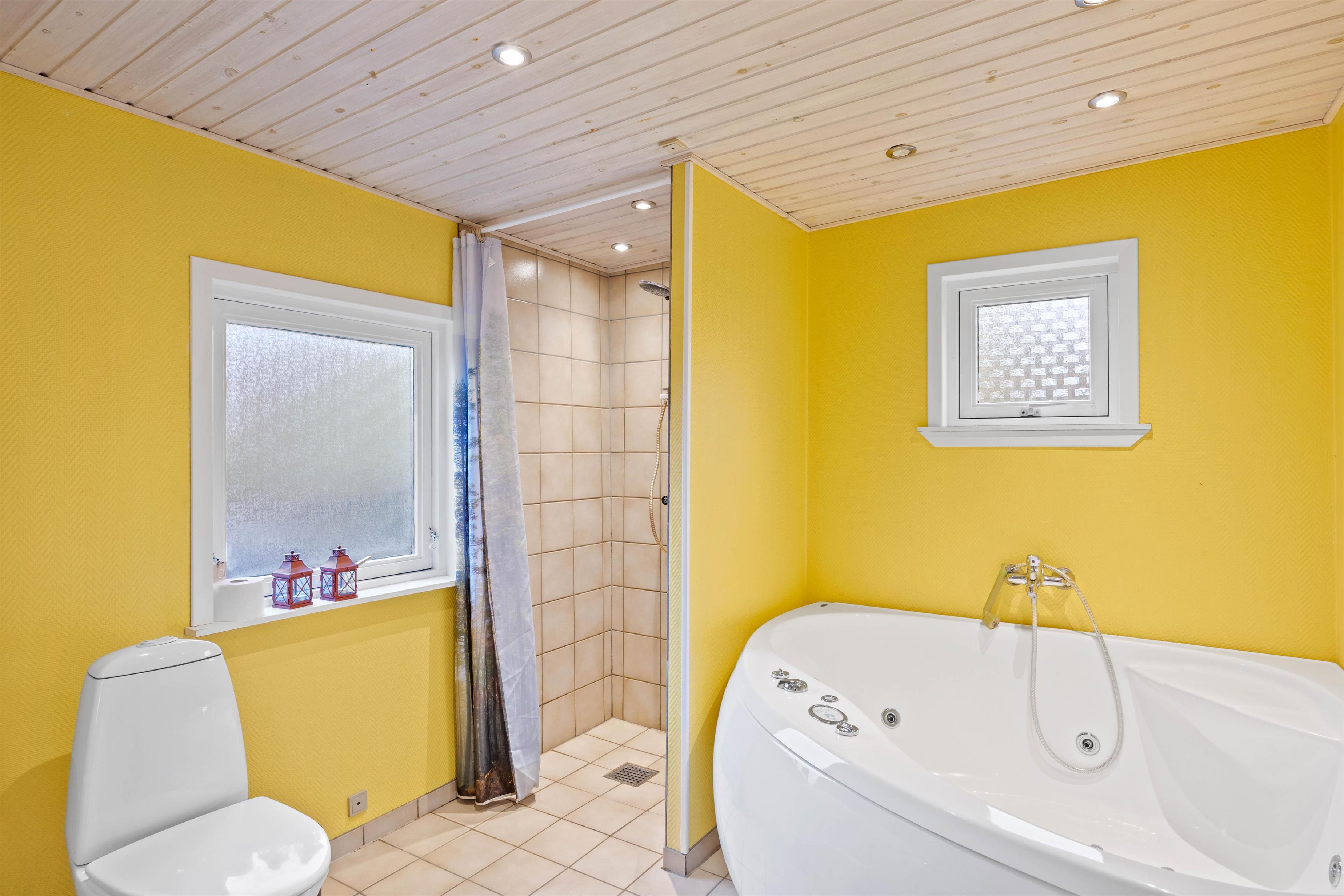 Feriehuset har 2 soveværelser samt et badeværelse, der indbyder til afslapning i boblebadet. Spabadet giver jer mulighed for at komme helt ned i gear og glemme den travle hverdag. Vaskemaskine og tørretumbleren er også at finde her.
