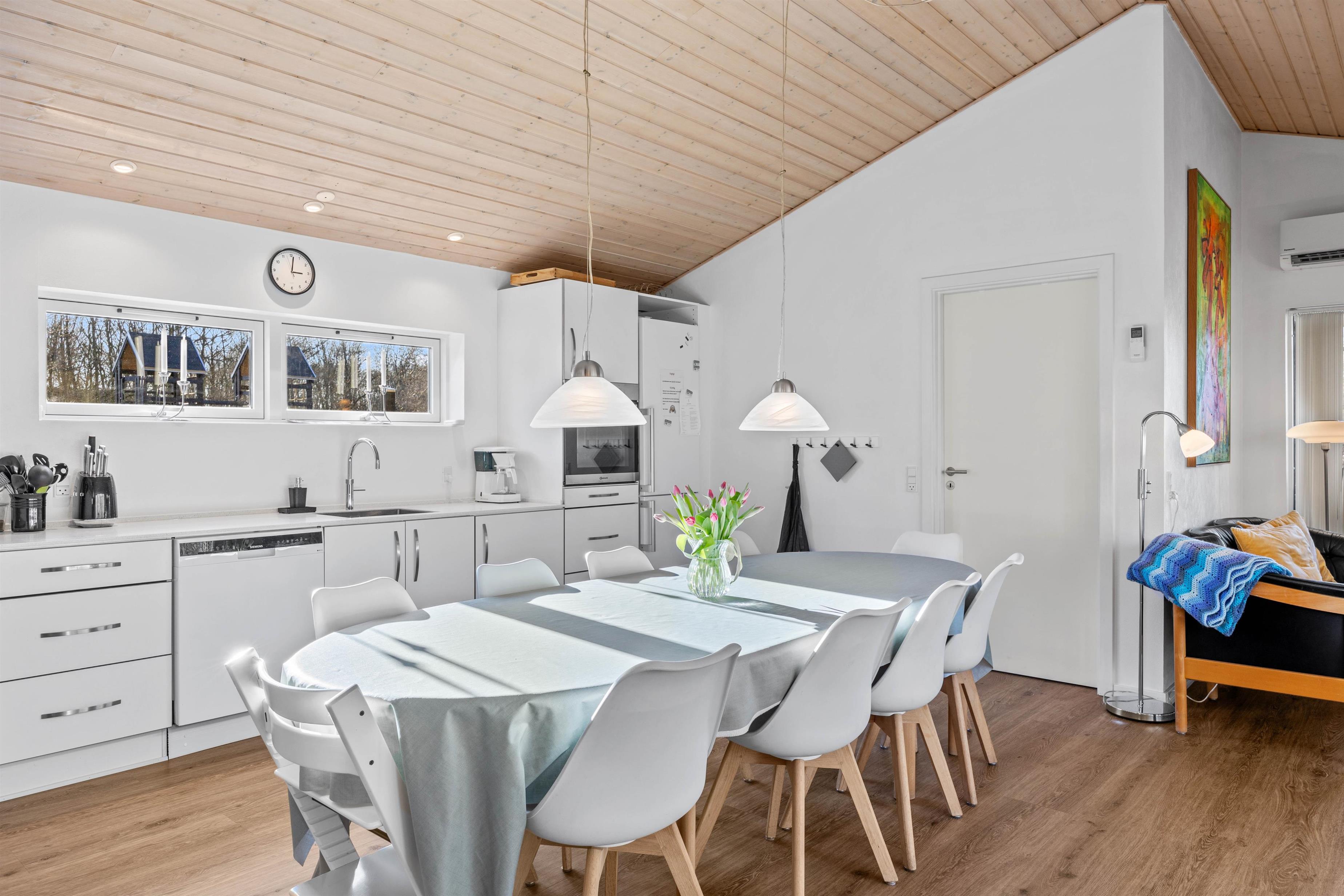 Sommerhuset er renoveret i 2023 og fremstår særdeles lyst og indbydende. I hovedhuset er alrummet, hvor I alle kan samles og skabe gode ferieminder. De store vinduespartier mod nord og vest skaber et fantastisk lysindfald og god atmosfære i rummet. Tænd op i brændeovnen, find drikkevarer og snacks frem og hyg jer med et sjovt kortspil i sofagruppen.