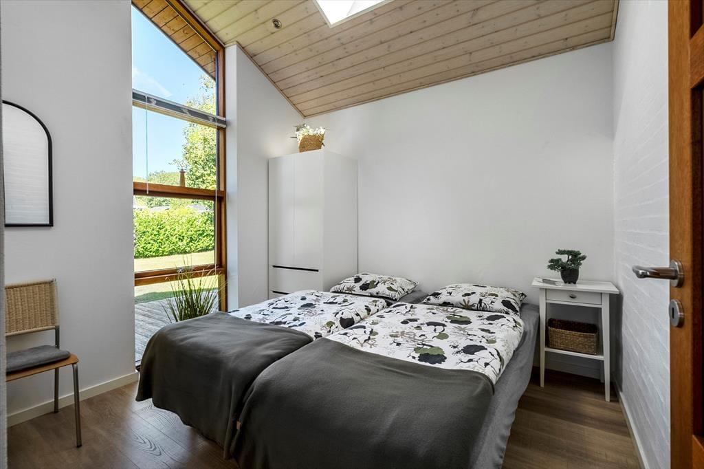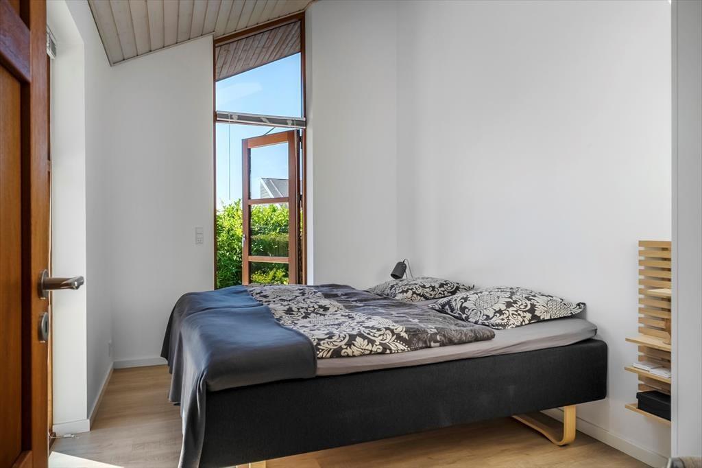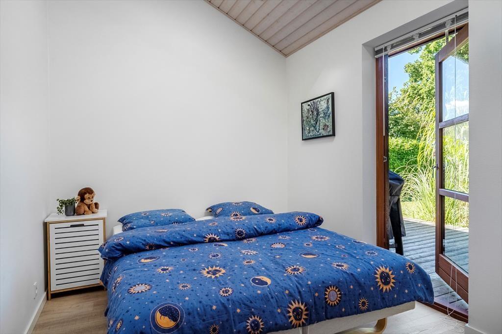 Huset har flere gode soveværelser – alle lyse, enkle og med adgang til haven eller store vinduespartier. Der er 3 værelser med dobbelt seng og et enkelt værelse med en dobbelt sovesofa, hvilket gør huset fleksibelt for både familier og par.