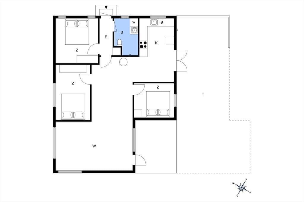 I husets hjerte finder I den store stue med åbent køkken – et naturligt samlingspunkt med brændeovn til de kølige aftener og direkte udgang til den hyggelige terrasse. Her kan I samles til brætspil, feriemiddage og lange snakke. Fra både køkkenet og udestuen er der adgang til haven og den dejlige, delvist overdækkede terrasse. Badeværelset er lyst og funktionelt indrettet med bruseniche og vaskemaskine.