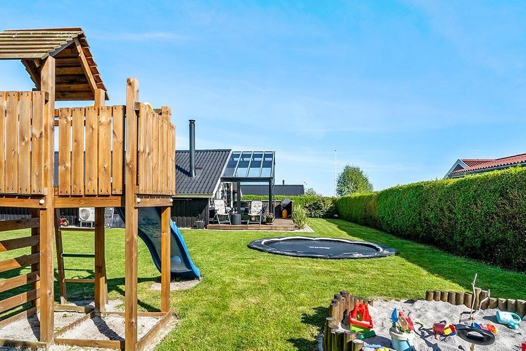 Børnene kan lege frit i haven med trampolin, gyngestativ og sandkasse. På terrassen er der behagelige havemøbler, hvor man kan slappe af og nyde solen. Der er også en gasgrill til rådighed, så man kan lave lækre måltider i løbet af ferien.