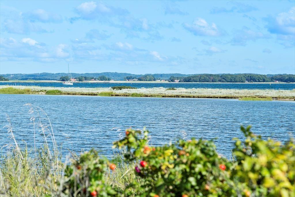 Den børnevenlige strand ligger kun 400 fra sommerhuset. I sommerhalvåret er der sat badebro op til fri afbenyttelse.