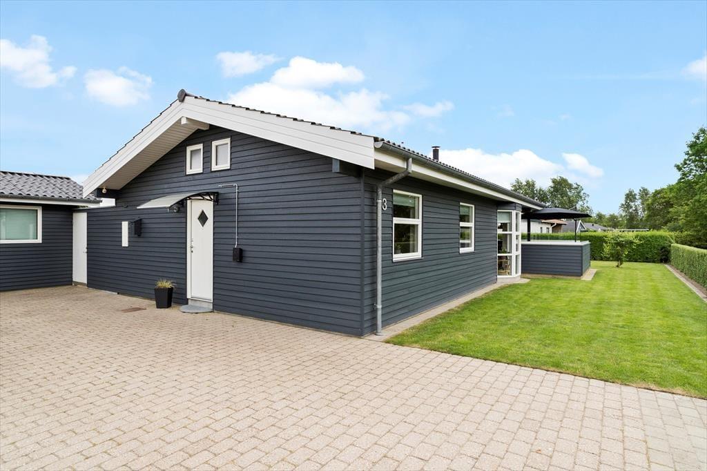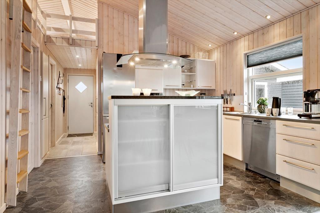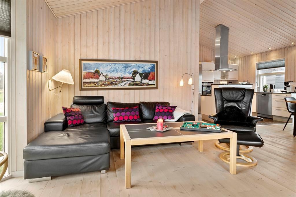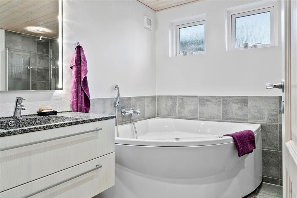 Vi byder velkommen til dette dejlig sommerhus i skøn sommerhusstil. Her kan familien eller vennerne på 6 personer få en dejlig ferie i gode rammer. Det moderne køkken har en god størrelse og indeholder alt det, I skal bruge under ferien inkl. opvaskemaskine. I køkkenet har i god plads til at lave feriens måltider. Køkkenet har direkte forbindelse til den store og åbne stue, hvor der både er spiseafdeling og et hyggeligt sofahjørne. Hvis I ønsker at skrue lidt ekstra op for hyggen, kan I tænde op i brændeovnen. Fra stuen har I udgang til den ene delvist overdækkede terrasse, hvor I kan bruge mange hyggelige timer med brætspil eller gode snakke. Husets sovepladser fordeler sig på 3 gode soveværelser. Her er der 2 værelse med dobbeltsenge og et værelse med sovesofa. Stort, flot og virkelig lækkert badeværelse med både brus, toilet, gulvvarme samt spabad.