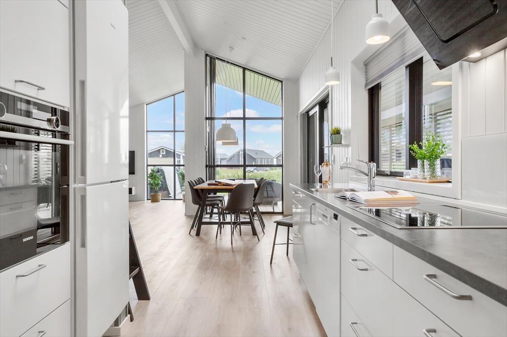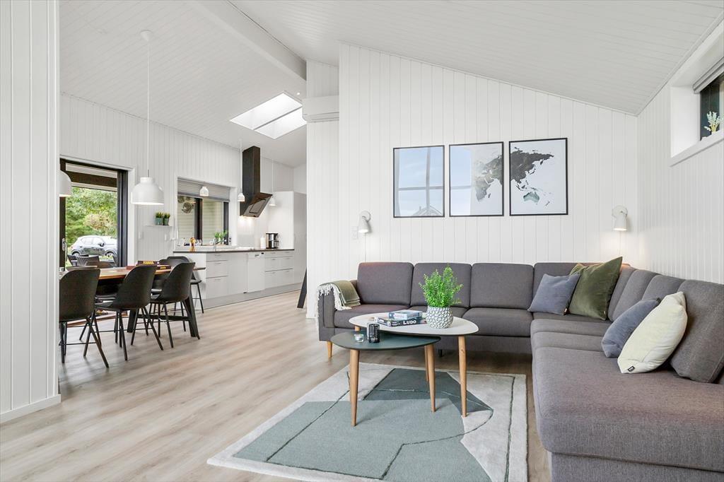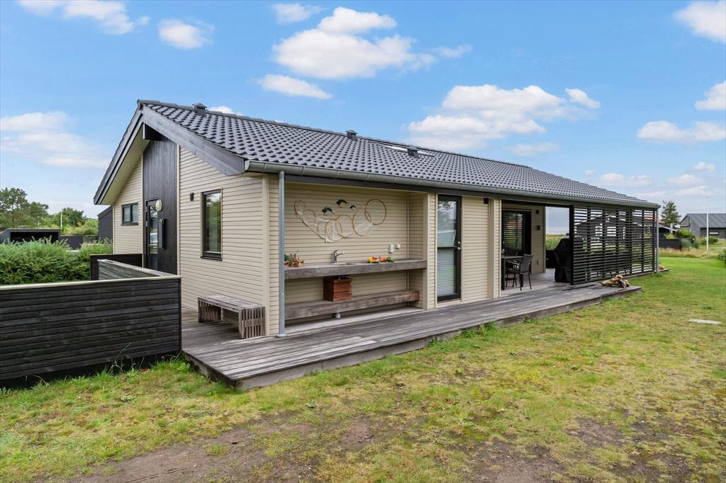 Vi byder velkommen til dette sommerhus i skøn sommerhusstil med havkig. Her kan en familie på op til 6 personer nyde en dejlig ferie i gode rammer. Det moderne køkken har en god størrelse og indeholder alt det nødvendige til ferien, inklusive opvaskemaskine. Køkkenet giver jer masser af plads til at tilberede feriens måltider og har direkte forbindelse til den store og åbne stue, hvor der både er spiseafdeling og et hyggeligt sofahjørne. Fra stuen er der udgang til den delvist overdækkede terrasse, hvor I kan tilbringe mange hyggelige timer med brætspil eller gode samtaler. Husets sovepladser fordeler sig på 3 gode soveværelser. Der er to værelser med dobbeltsenge og et værelse med to enkeltsenge samt et flot badeværelse og et gæstetoilet.