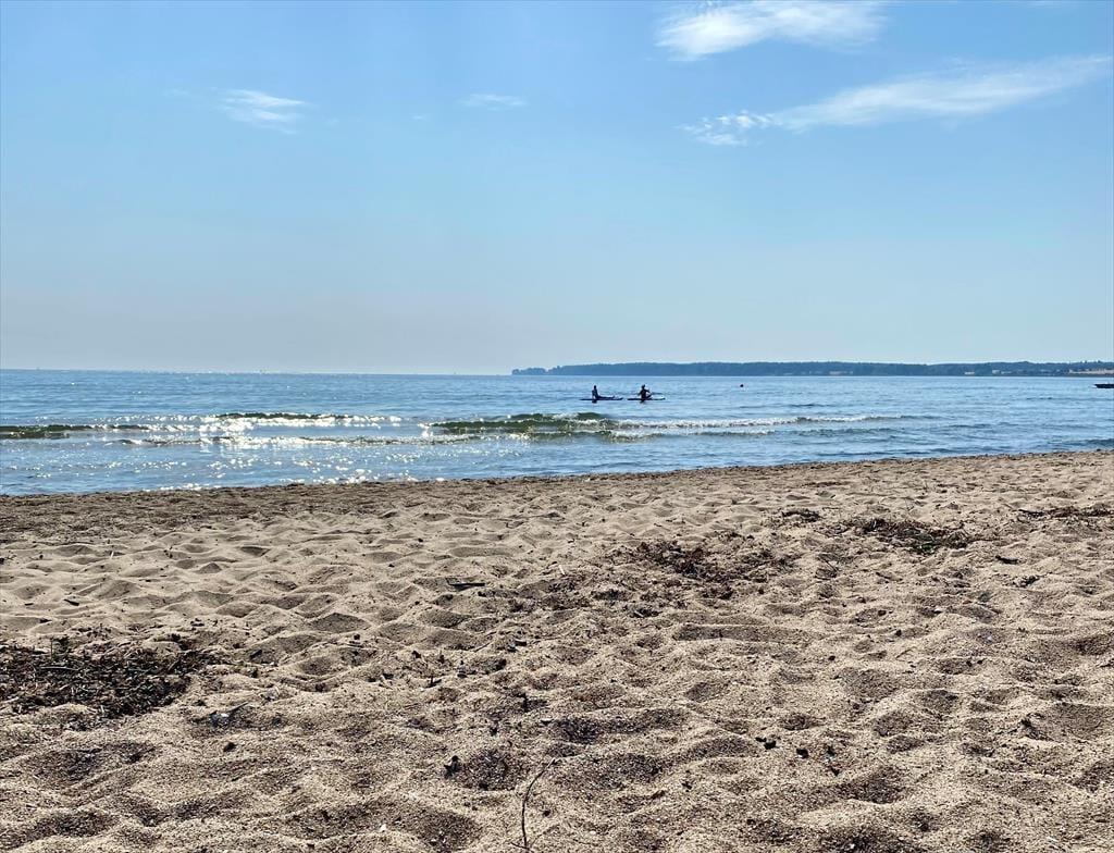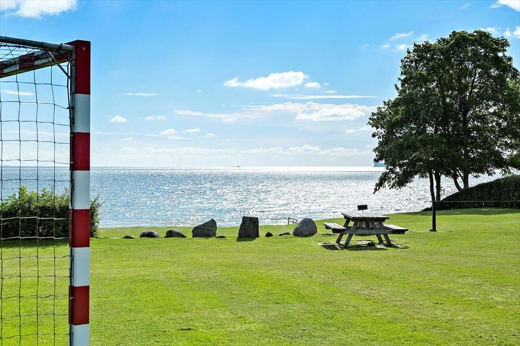 Sommerhuset ligger kun 150 m fra en af Østjyllands bedste badestrande, hvor I kan nyde strandlivet med badeture, gåture og måske bygge det flotteste sandslot. I sommerhusområdet er der også en sportsplads med fodboldmål og en lille legeplads, hvor børnene kan lege frit.