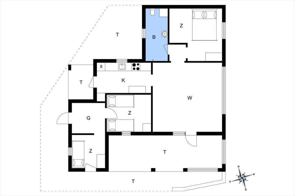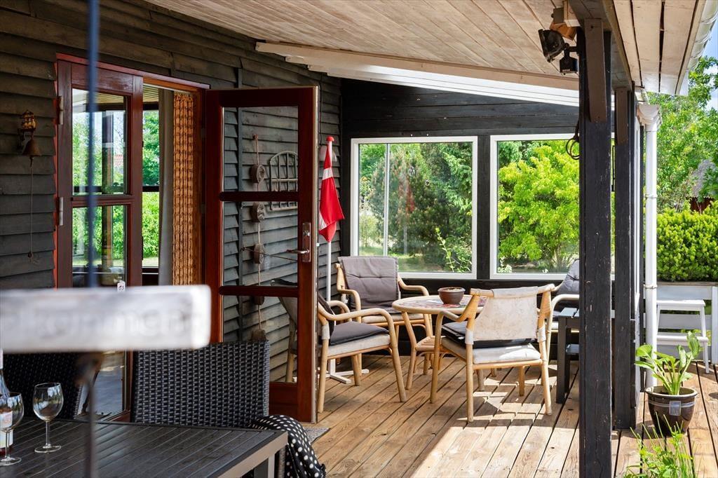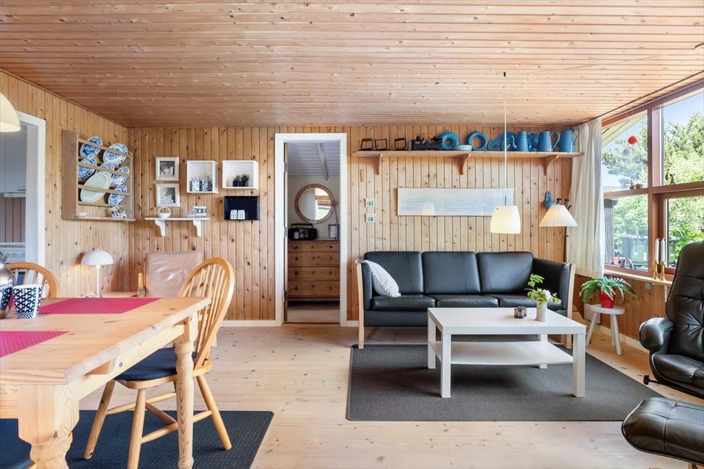 Sommerhuset rummer en stue, et køkken, tre soveværelser og et badeværelse. Fra stuen er der direkte udgang til en hyggelig, overdækket terrasse, som er med til at forlænge sommermånederne langt ind i efteråret.