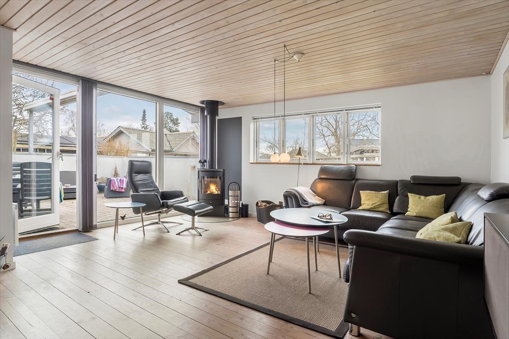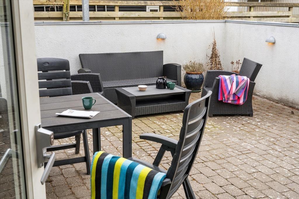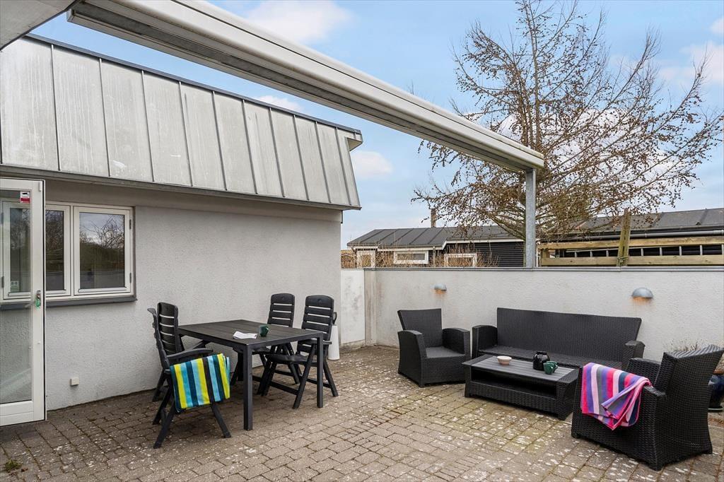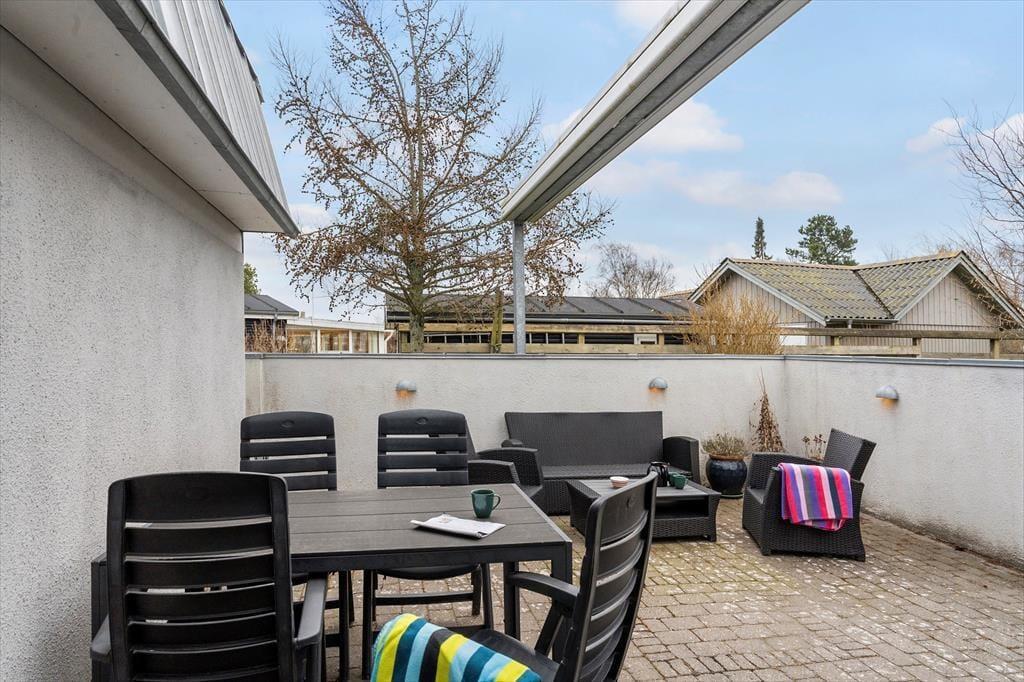 Fra stuen er der udgang til en terrasse, hvor I kan tilbringe mange hyggelige timer med brætspil eller gode samtaler.