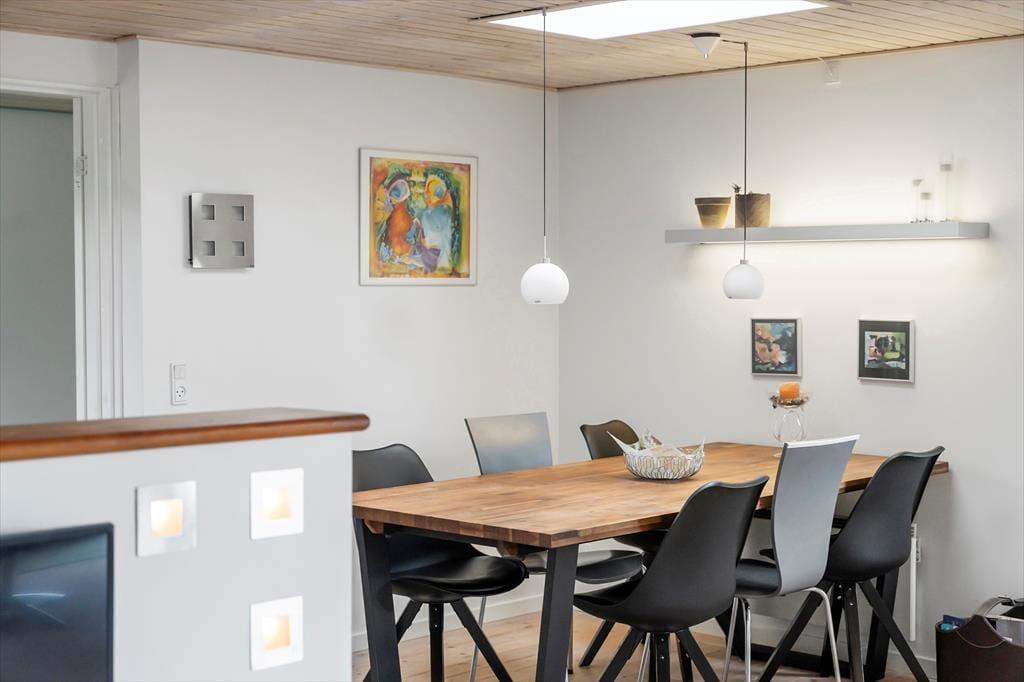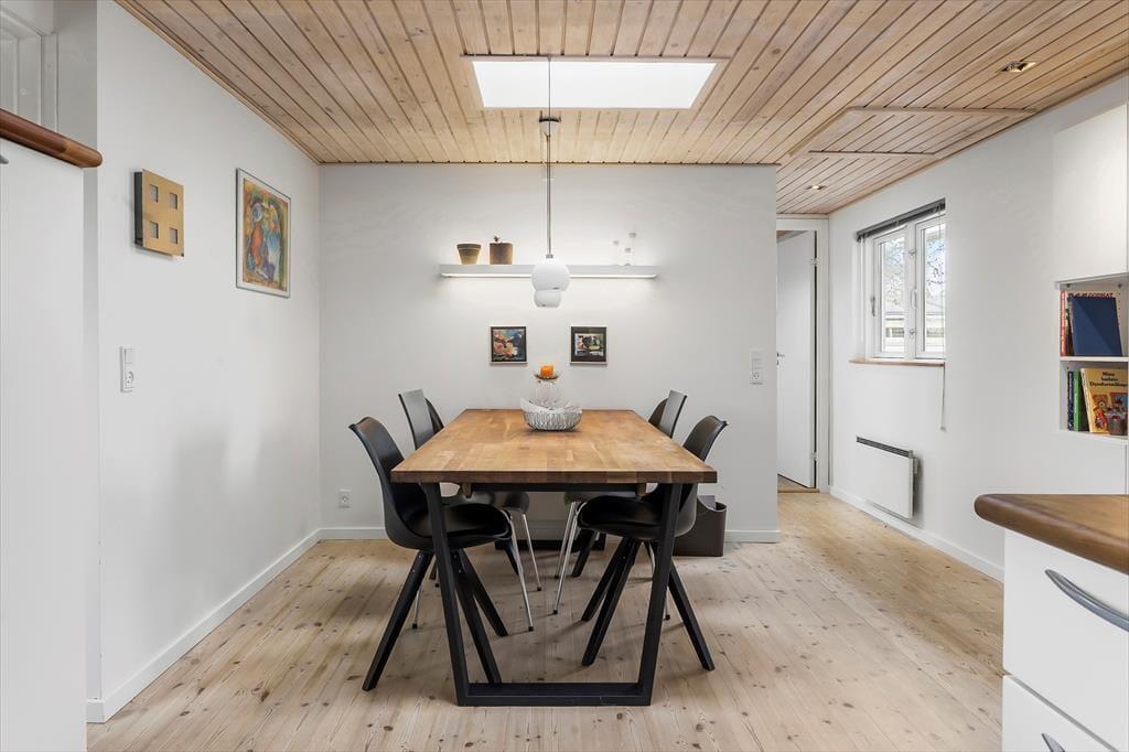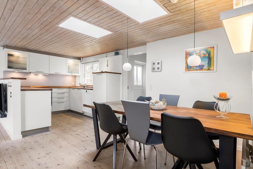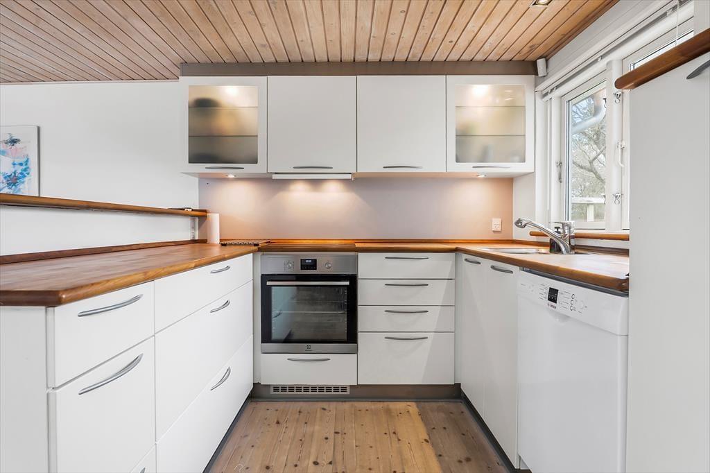 Vi byder velkommen til dette sommerhus i klassisk sommerhusstil. Her kan en familie på op til fem personer nyde en dejlig ferie i skønne omgivelser. Det moderne køkken har en god størrelse og indeholder alt det nødvendige til ferien – inklusive opvaskemaskine. Køkkenet giver jer masser af plads til at tilberede måltider og har direkte forbindelse til den store, åbne stue, hvor der både er spiseafdeling og et hyggeligt sofahjørne.