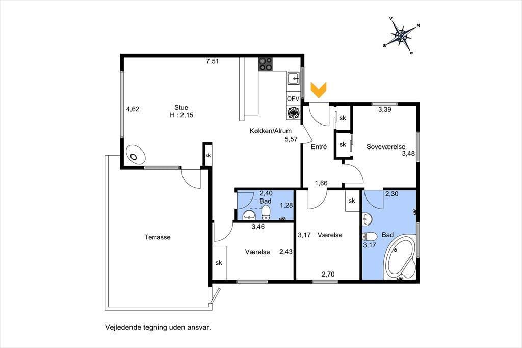 Husets sovepladser fordeler sig på tre gode soveværelser: ét med en dobbeltseng, ét med to enkeltsenge og ét med en enkeltseng. Derudover er der to flotte badeværelser.