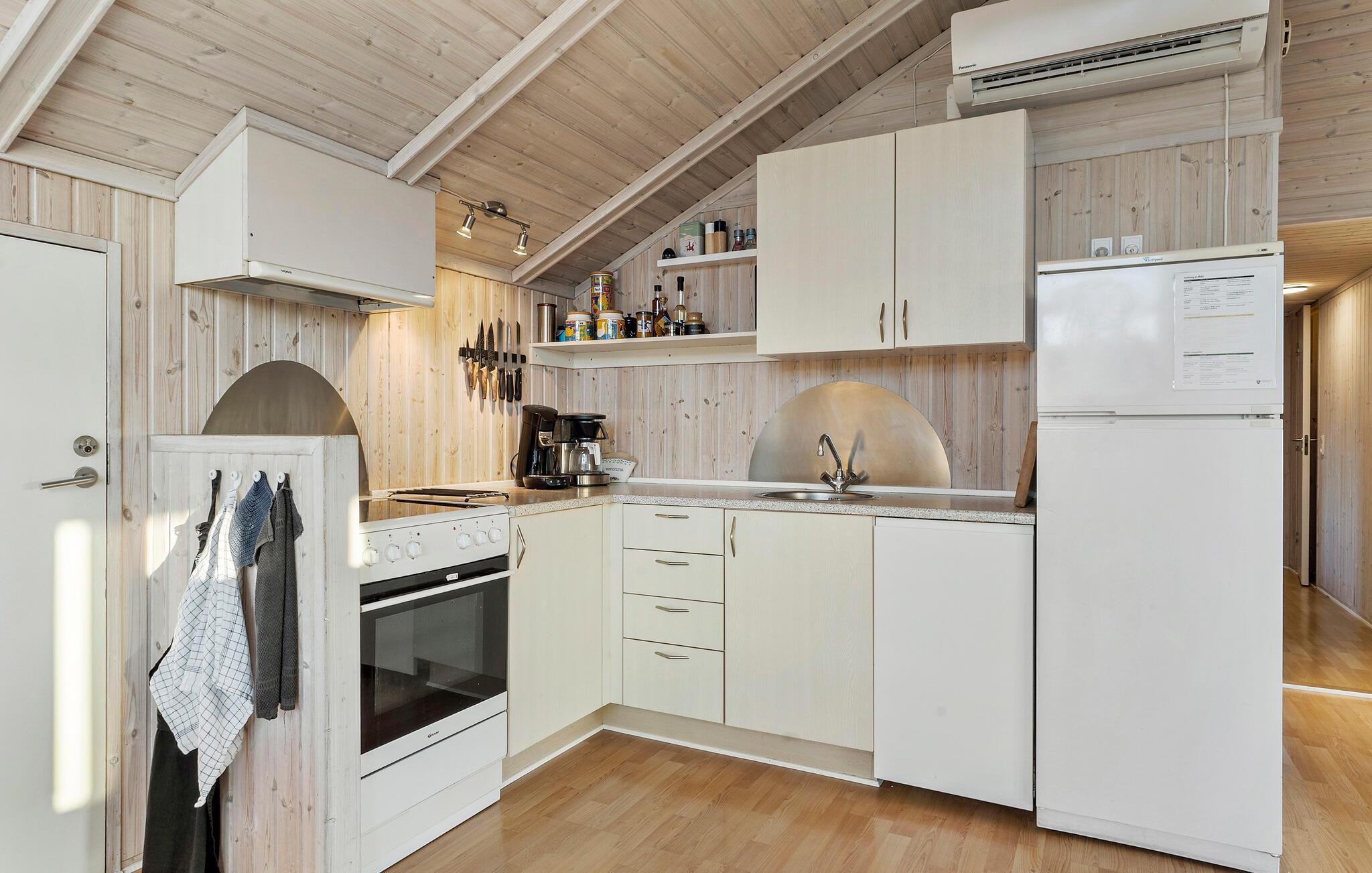 Velkommen til den hyggelige atmosfære i dette komfortable feriehus, hvor I kan se frem til en afslappende pause fra hverdagen. Forkæl jer selv med afslappende stunder i spabadet eller saunaen, nyd dagens måltider i den stilfulde spisestue og glæd jer til hyggelige madlavningsaftener i det indbydende køkken. Brændeovnen spreder ekstra hygge og varme om aftenen, når I har sat jer til rette i sofaen og hygger med brætspil eller en god feriekrimi.