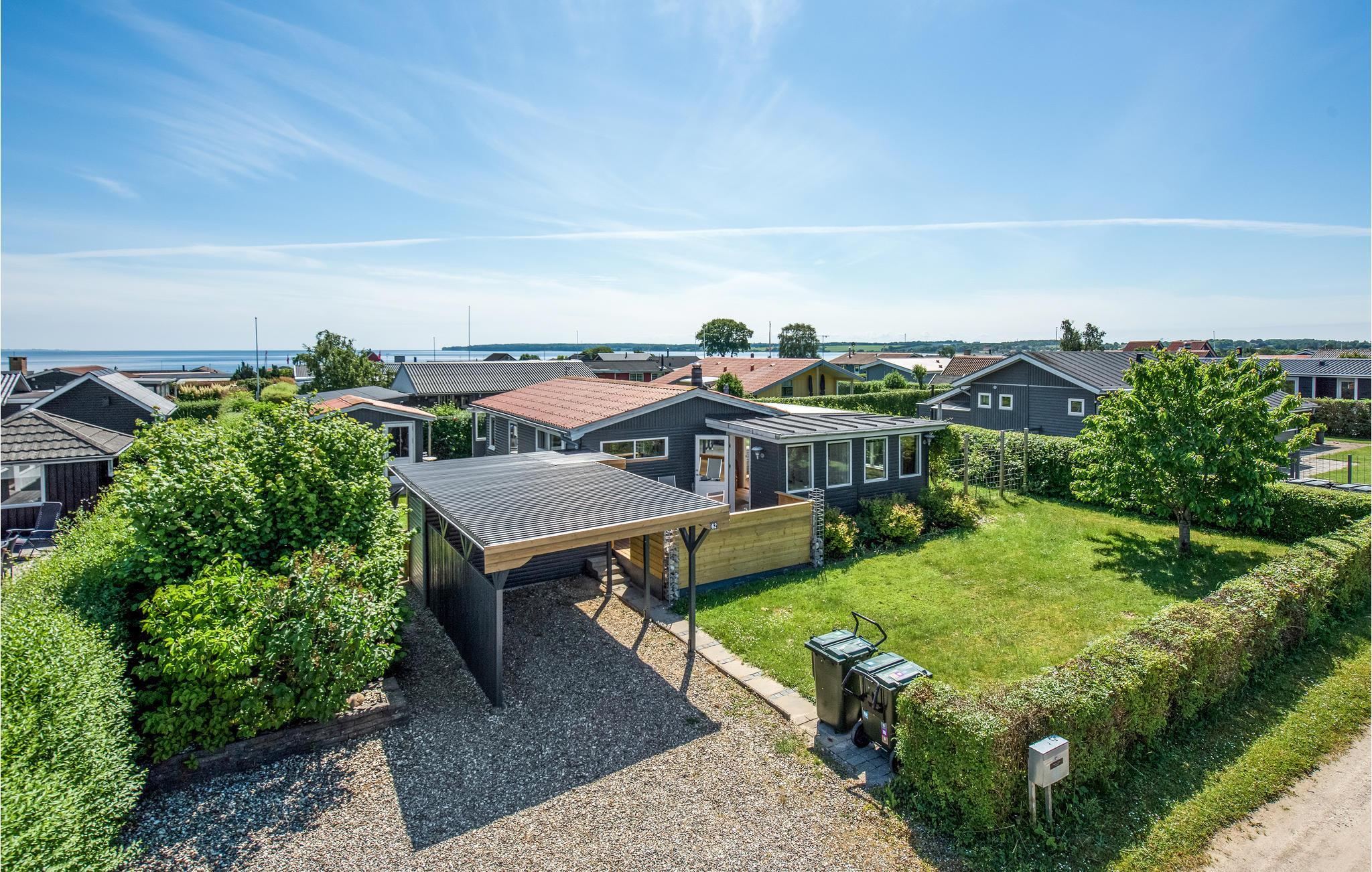 Tæt på en virkelig god og børnevenlig sandstrand og i et opvokset sommerhusområde ligger dette hyggelige sommerhus. Der er flere gode terrasser ved huset, to med overdækning og en af de overdækkede er lukket på alle sider som en havestue. Rummet vil helt sikkert blive brugt til hygge, at spille spil, nyde aftensmaden på en kølig aften eller måske som børnenes legerum. Huset er indrettet med en pæn stue med en god spiseplads og en sofagruppe tæt ved brændeovnen, og hvor det godt udstyrede køkken ligger i forlængelse af stuen. Der er to gode soveværelser i selve sommerhuset samt et anneks med yderligere fire sovepladser i etagesenge. Annekset ligger tæt på huset blot et smut over terrassen, de lidt større børn vil helt sikkert synes om, at have helt deres eget "hus". Der er to badeværelser i alt - et i huset og et med adgang fra den overdækkede terrasse. Ved huset findes desuden en carport, så jeres bil kan stå i ly for sol og regn.