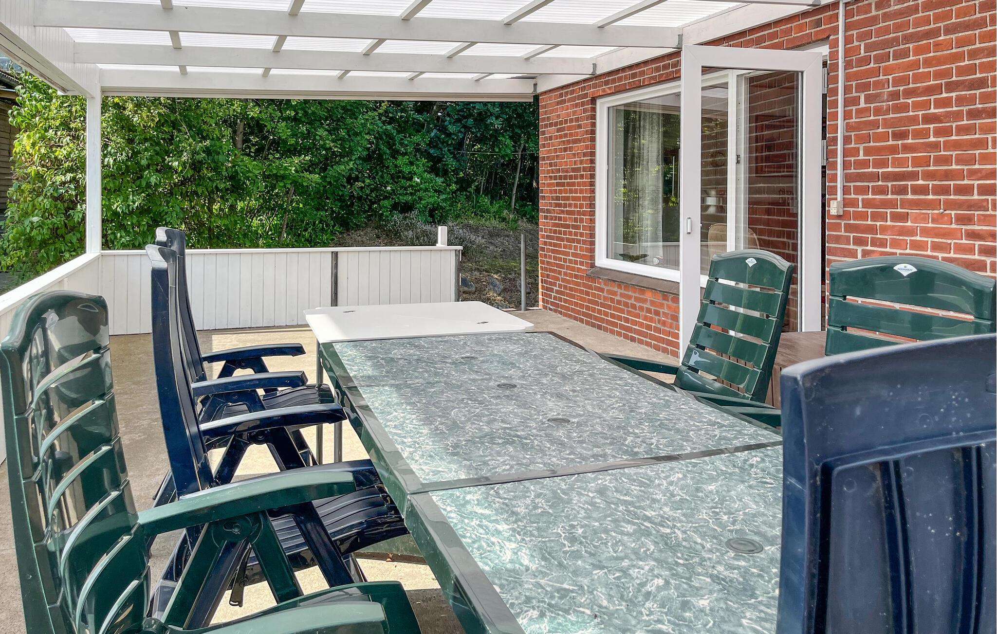Træd allerede om morgenen ud på terrassen med en friskbrygget kop kaffe. Nyd udsigten til den grønne have, og spis morgenmad i fred og ro. Fordyb jer derefter i jeres ferielæsning, eller læg planer for den kommende dag. Om aftenen indbyder terrassen til at afslutte dagen med et godt glas vin.