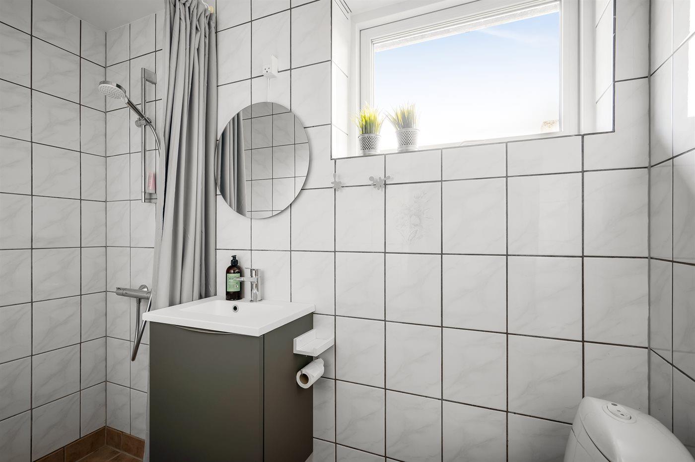 Der er 2 badeværelser med bruseniche og 2 toiletter, heraf 1 gæstetoilet Der er gulvvarme på gæstetoilettet.. Badekar.