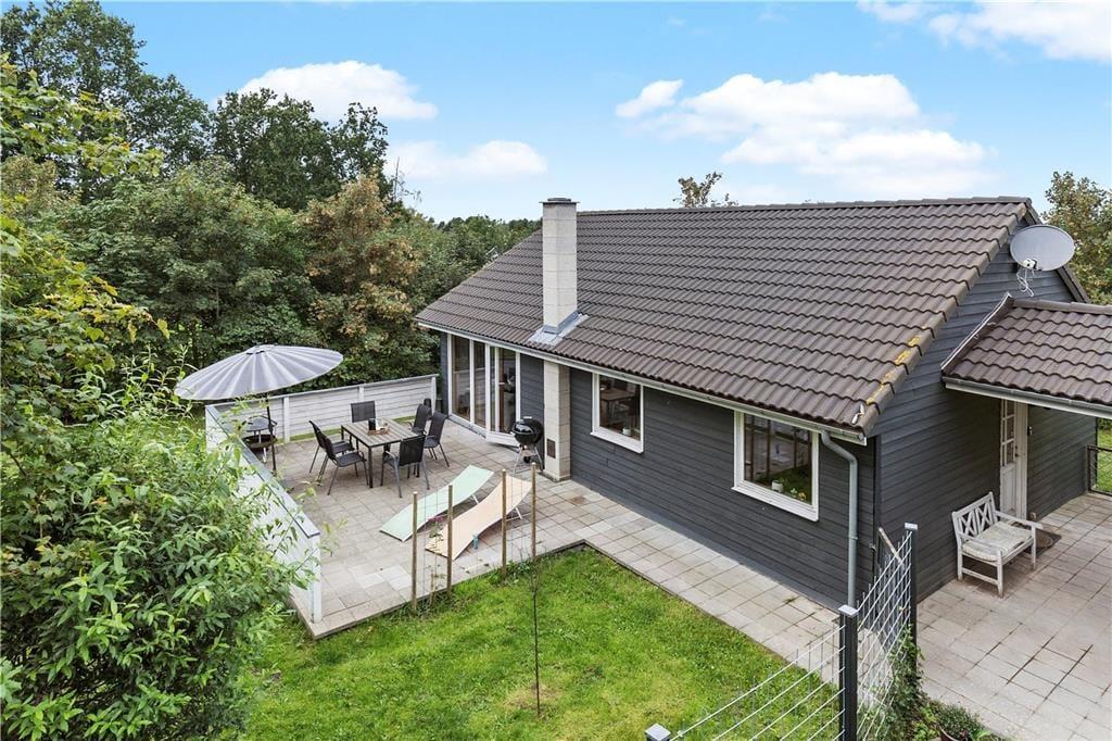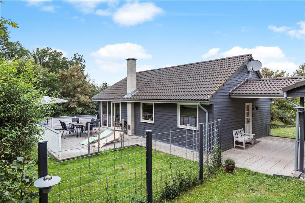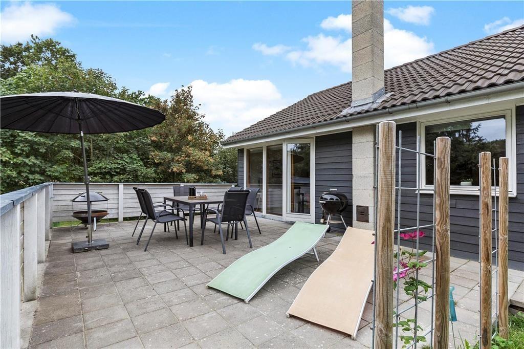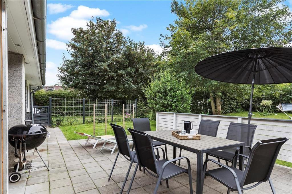 På den rummelige terrasse kan du finde læ til en lur i liggestolen eller sidde ved bordet under parasollen og nyde haven og solen. Når sulten melder sig, er det bare med at få tændt for grillen og lagt et par pølser og bøffer på. Hvis det er efterår, er der en overdækning ved hoveddøren hvor våde sko kan sættes udenfor til afdrypning.