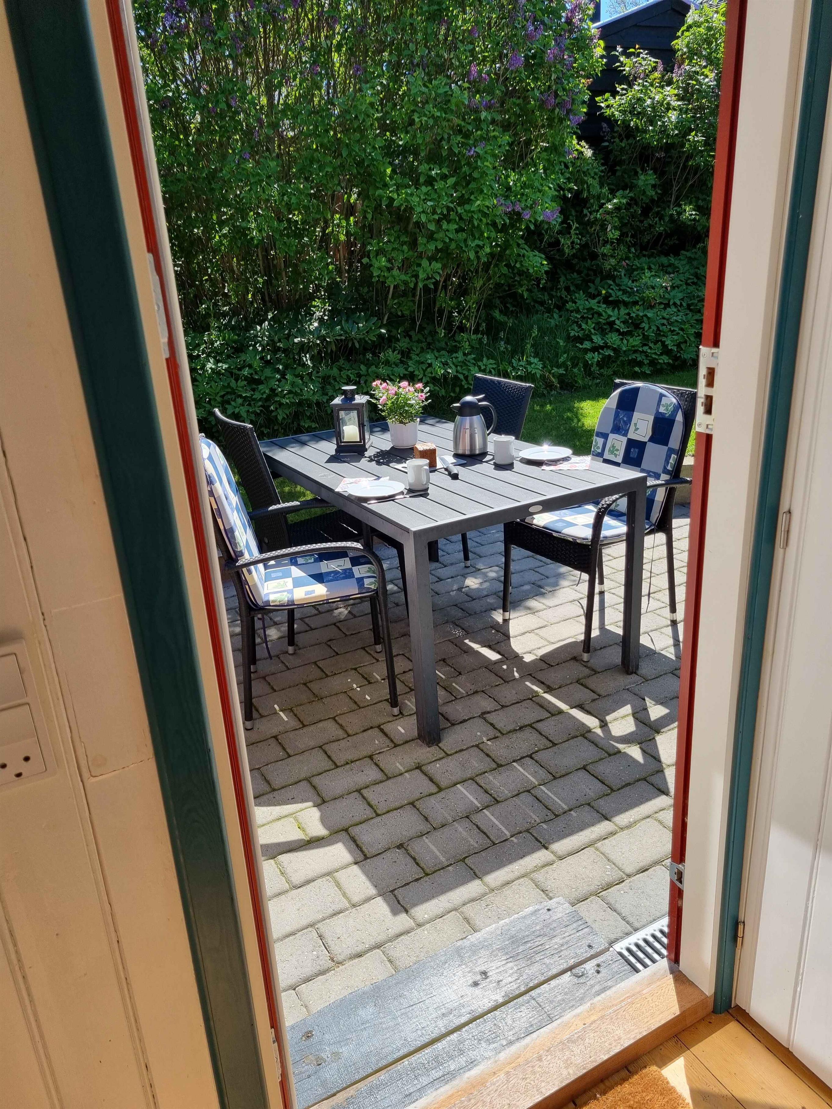 Charmerende sommerhus fra 1940'erne nær Høve strand med moderne faciliteter og hyggelige terrasser.