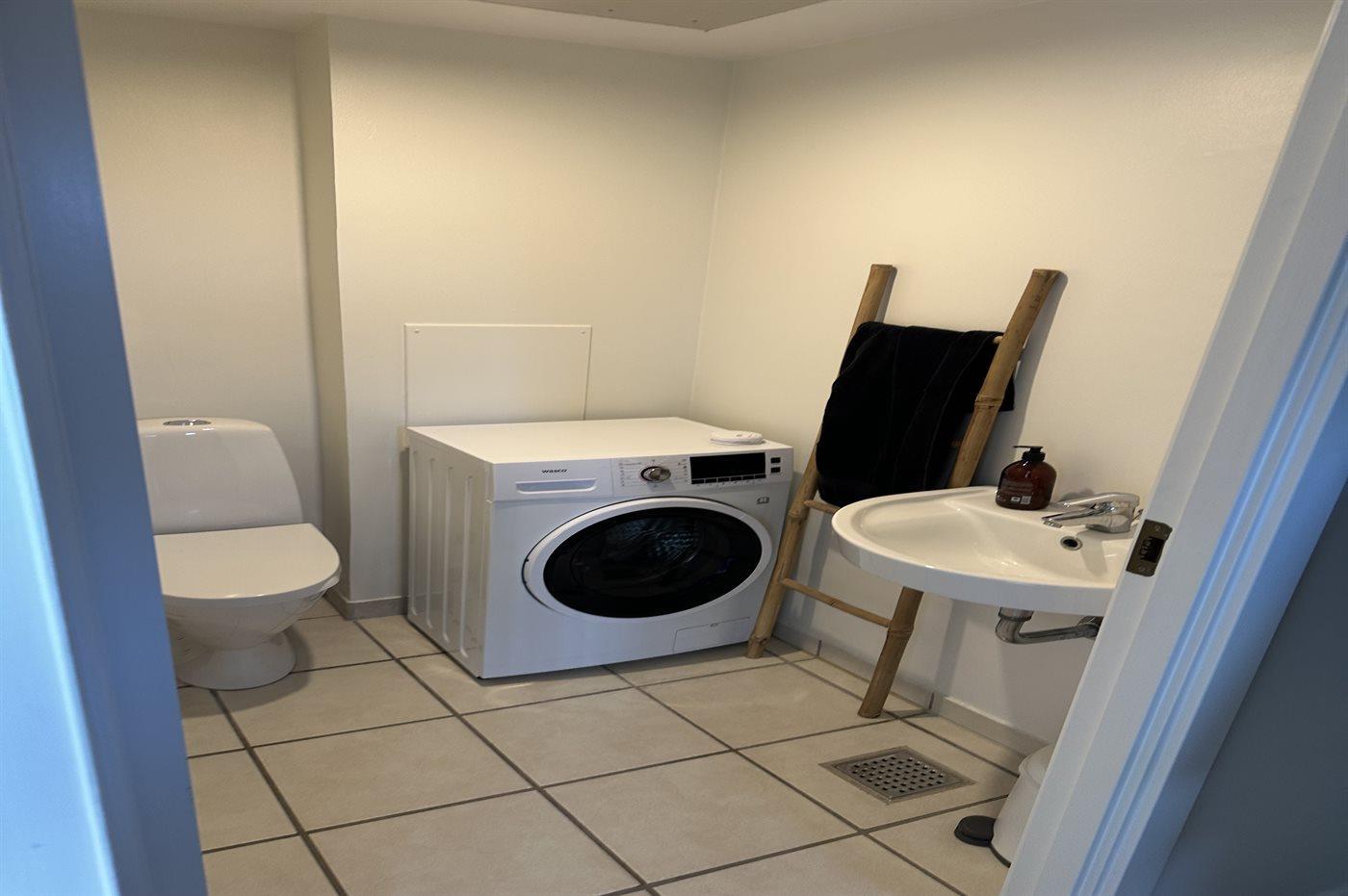 Der er 1 badeværelse med bruseniche og 2 toiletter, heraf 1 gæstetoilet. Der er gulvvarme på 1 badeværelse. Der er gulvvarme på gæstetoilettet.