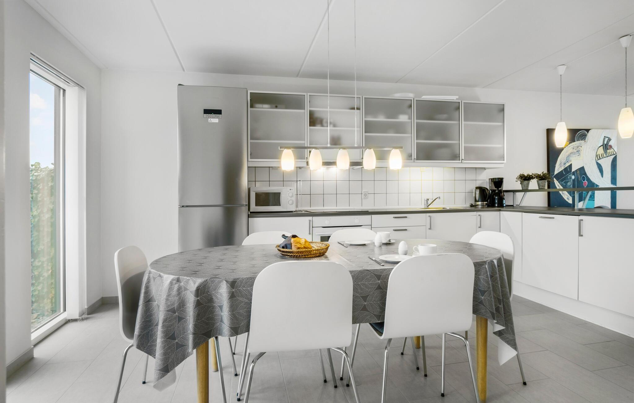 På det naturskønne Vestfyn finder man disse dejlige 2-etages feriehuse med beliggenhed direkte ned til vandet og kun 100 m fra den nærmeste sandstrand med badebro. Husene er opført i 2005 og har alle spabad samt en lys og moderne skandinavisk indretning, som fremhæves yderligere af smukke lysindfald fra de store vinduespartier. Fra flere af rummene kan man nyde den helt fantastiske udsigt over Lillebælt, Jylland og Baagø, hvis man da ikke lige er i færd med i fællesskab at tilberede et lækkert aftensmåltid i det veludstyrede køkken. Assens og omegn Feriehusene ligger nær den 800 år gamle, charmerende købstad og søfartsby Assens, som er en fredfyldt oase med brostensbelagte gader, idylliske bindingsværkshuse og købmandsgårde. Fra feriehusene, som ligger ved den hyggelige lystbådehavn, er der kun 500 m til Assens centrum, der byder på massevis af spændende gallerier, museer, samlinger og gode specialforretninger. Assens er omgivet af et smukt, bakket landskab med marker og skov og dejlige udsigter til det bølgekrusede Lillebælt, og området byder på mange enestående naturoplevelser, turistattraktioner og aktivitetsmuligheder. Ca. 15 km sydøst for Assens ligger halvøen Helnæs, der er kendt for sin unikke, uberørte natur, sit klare vand og skønne badestrande. 10 km nord for Assens finder man Sandager Næs, som er et ideelt udflugtsmål for dem, der gerne vil fiske, vandre, cykle eller bare nyde naturen i de fredelige omgivelser. Pak en lækker madkurv og sejl med færgen fra Assens til den lille, naturskønne ø Baagø, der er et oplagt udflugtsmål for en endagstur. Eller hvad med at leje en af de populære skinnecykler med plads til 3-4 personer og lade hele familien opleve naturen på en ny måde? Med en kystlinie på ca. 90 km er Vestfyn desuden et eldorado for vandhunde og andre med hang til badeliv, windsurfing, dykning og sejlads. Fyn er fin! I Fyns 'hovedstad' Odense kan man sagtens få en hel dag til at gå med at shoppe, gå på museer, besøge H. C. Andersens Hus og kigge på dyrene i Odense Zoo. Fyn er også kendt for sine mange eventyrlige slotte og herregårde og de imponerende haver og parker, ligesom det fynske landskab rummer et skatkammer af velbevarede levn fra fortiden.