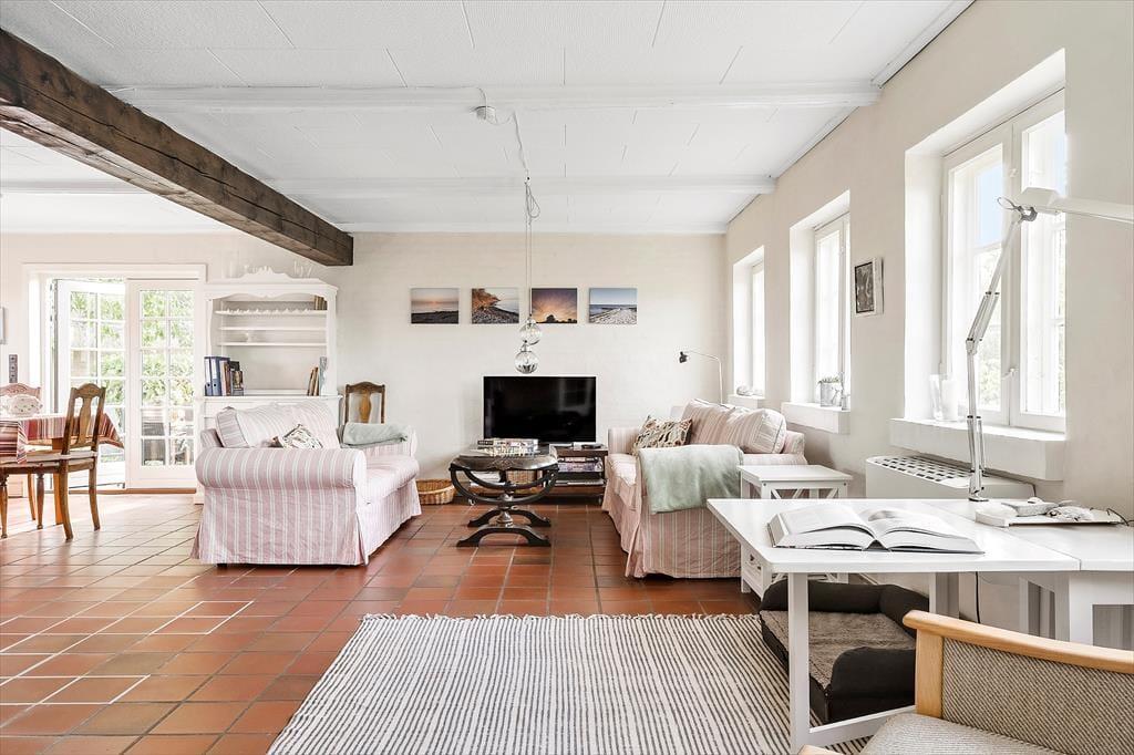 Huset er beliggende i naturskønne omgivelser for enden af en lukket vej ud mod marker. På terrassen kan både morgen- og eftermiddagssolen nydes samtidig med man kigger mod havet. Der er desuden en skøn have med frugttræer, gyngestativ og trampolin. Fra huset er der kort afstand til både skov og strand. Evt. fiskeri kan foregå fra kysten (gyldigt fisketegn påkrævet) og der er en fiskerenseplads på grunden, som med fordel kan benyttes hvis heldet har tilsmilet en.