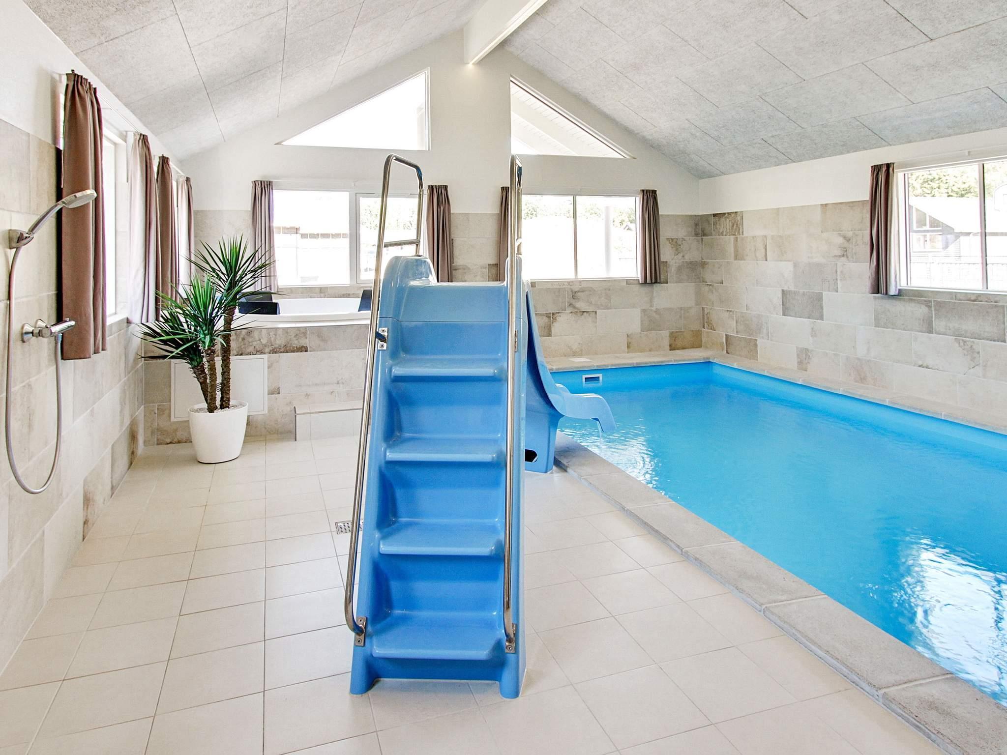 Husets poolafdeling indeholder både stor swimmingpool, svømmetræner, stort, indbygget spabad samt sauna med plads til 4-6 personer. Swimmingpoolen er på 20 m² og med rutschebane til børnene. Her vil store som små sikkert tilbringe en masse timer med leg og plasken.