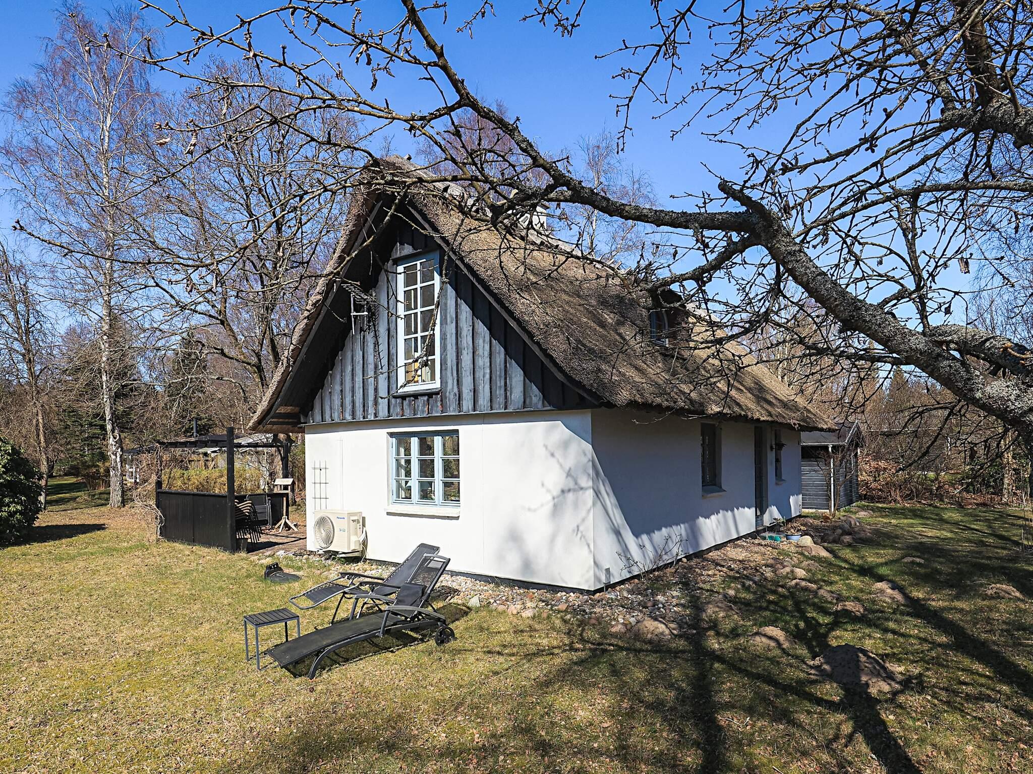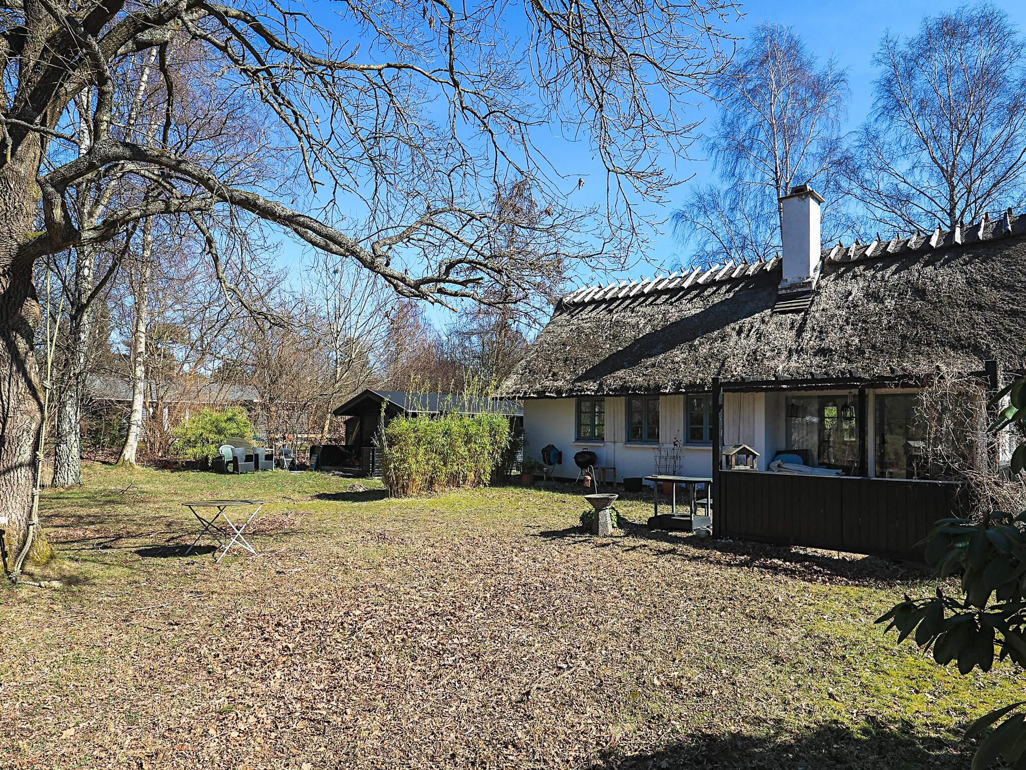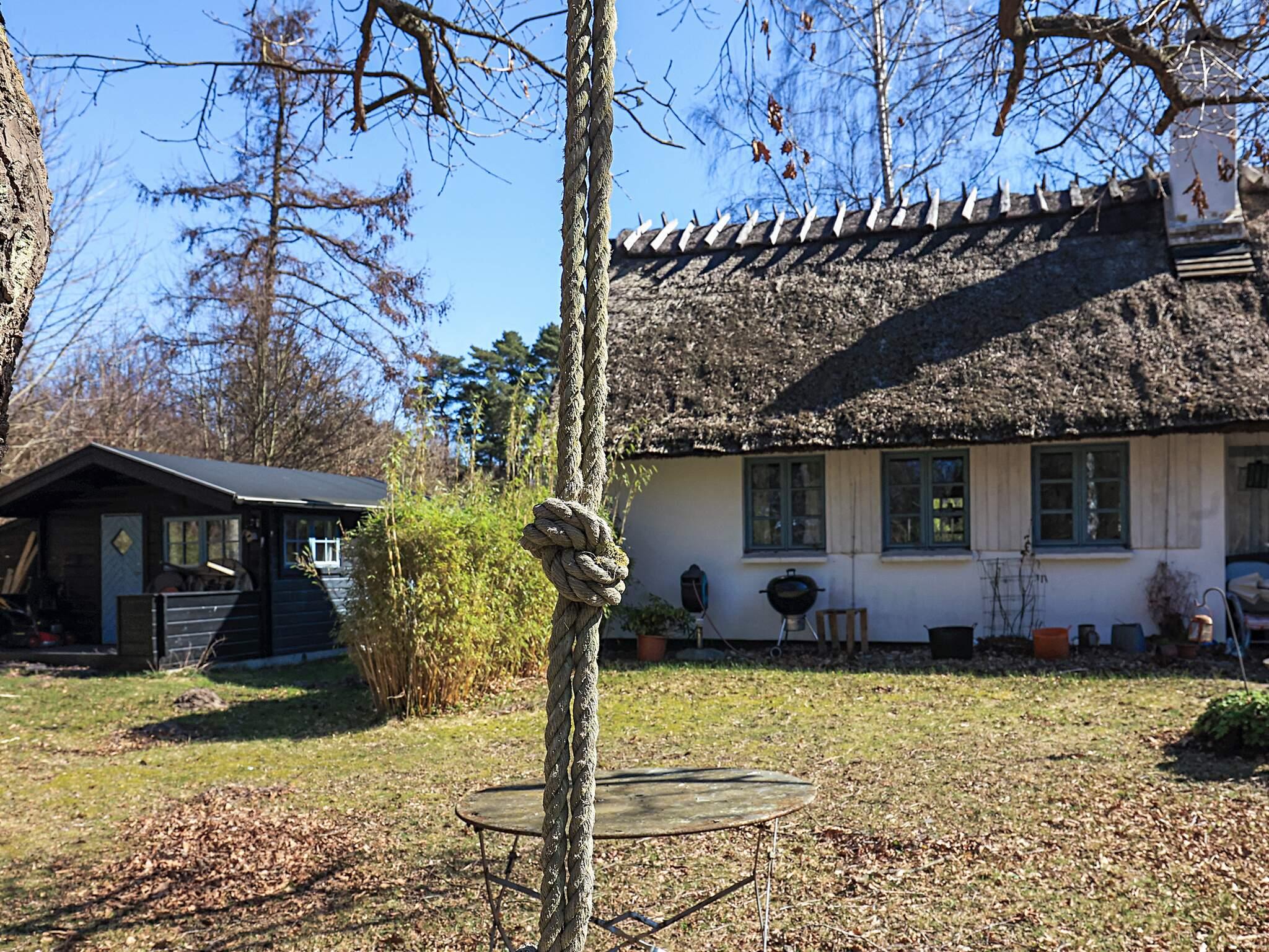 Udenfor byder den 1.000 m² store naturgrund på masser af plads til leg og afslapning under de smukke træer. Beliggenheden er ideel med kort afstand til både golfbane, restauranter og indkøb, som alle findes inden for 2 km. Dette stråtækte fristed er det perfekte valg for dem, der søger en autentisk sommerhusoplevelse kombineret med moderne bekvemmeligheder og god plads til hele familien.