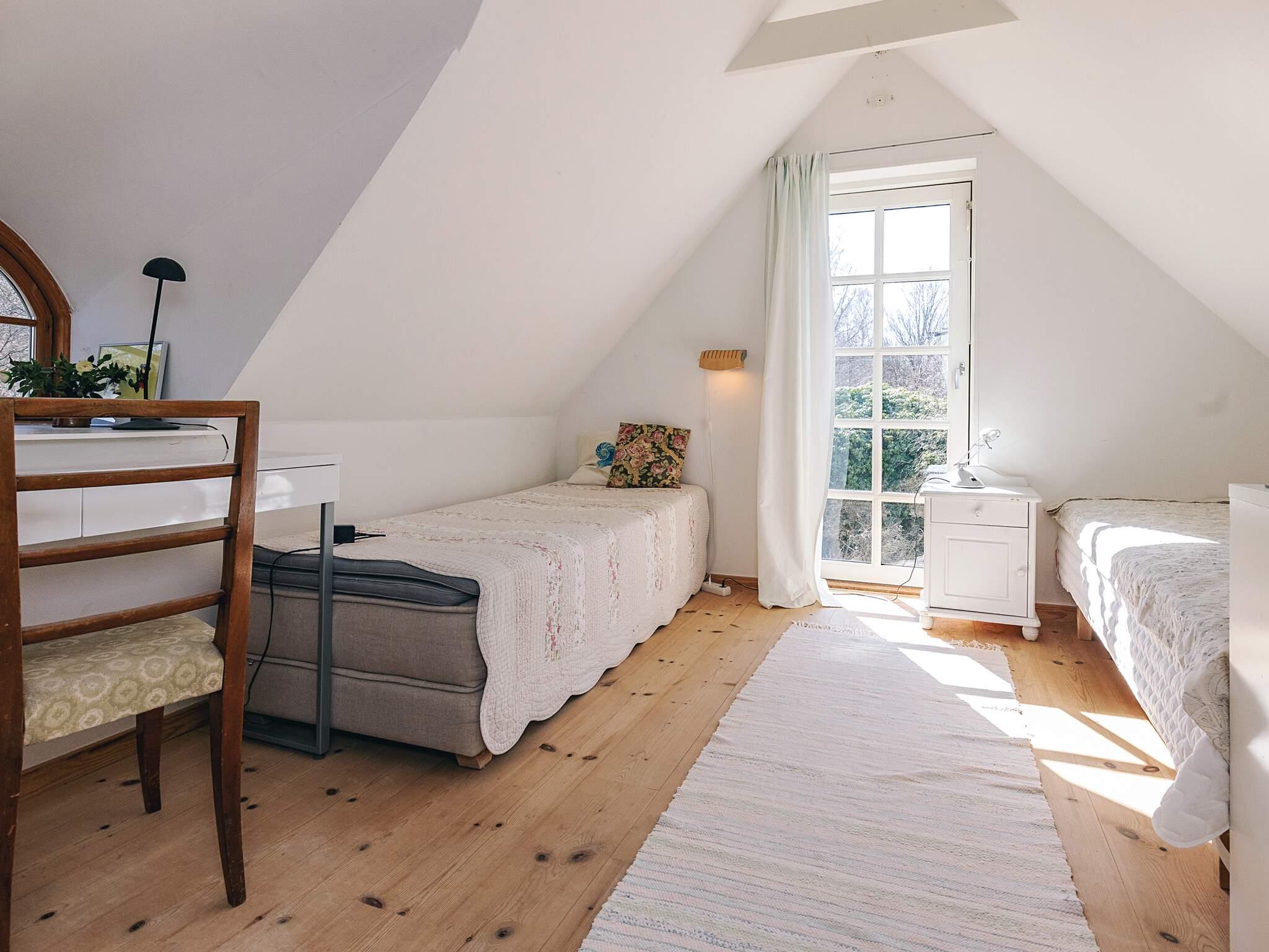 Boligen er praktisk indrettet med tre gode soveværelser i hovedhuset, fordelt med ét i stueetagen og to på førstesalen, alle med enkeltsenge. Som en ekstra fordel medfølger et anneks, der rummer yderligere tre sovepladser samt eget badeværelse og vaskemaskine. Huset opvarmes effektivt med en luft-til-luft varmepumpe og elvarme, mens køkkenet er udstyret med både ovn og opvaskemaskine for at sikre et bekvemt ophold.