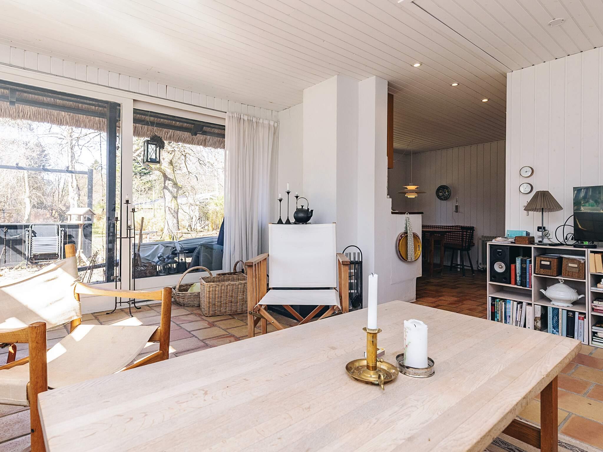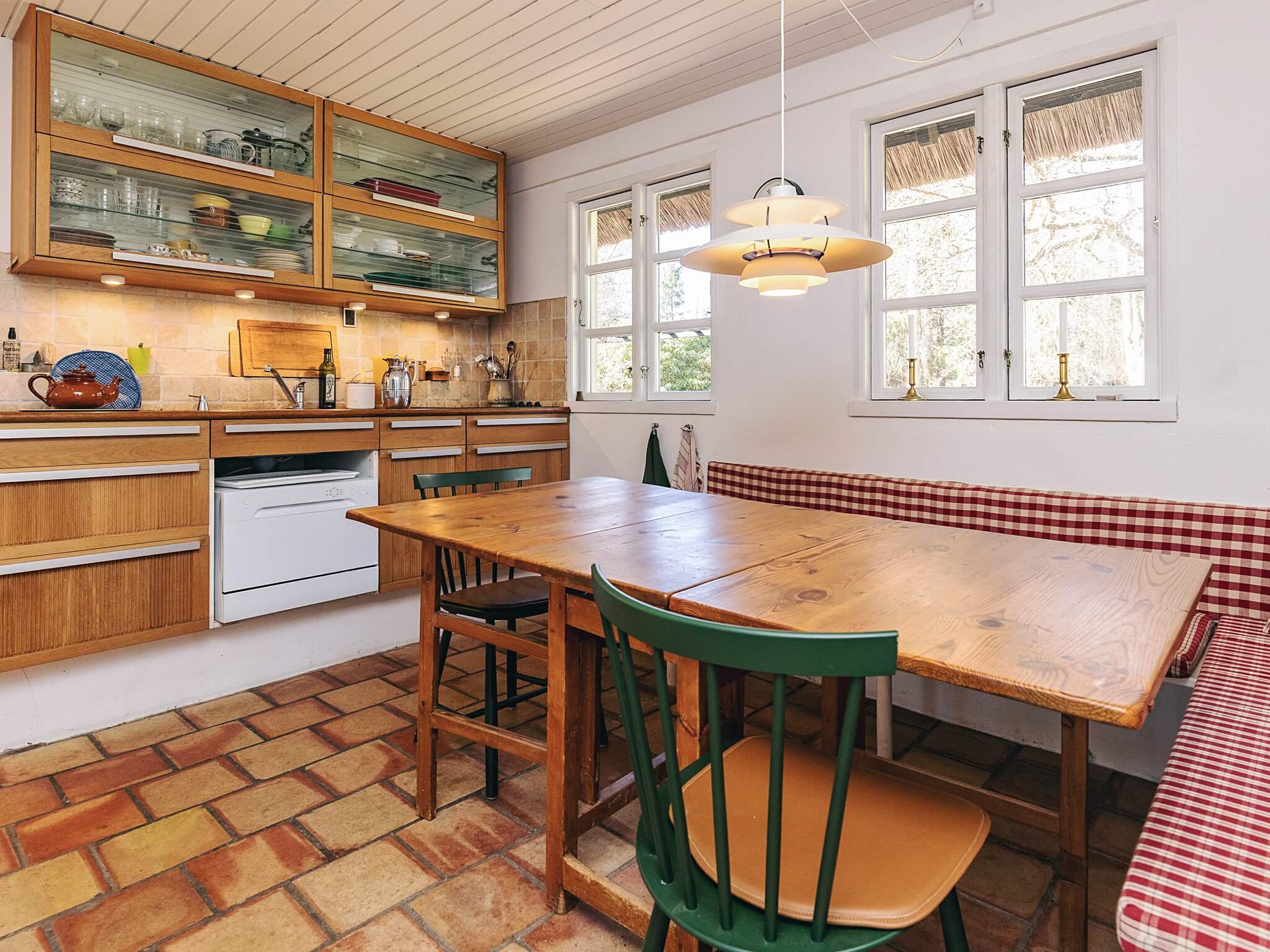 Velkommen til et charmerende og klassisk stråtækt sommerhus på 87 m², hvis autentiske atmosfære og naturskønne omgivelser skaber den perfekte ramme om en afslappende ferie. Fra indgangen træder man ind i en hyggelig fordelingsgang, der leder videre til køkkenet. Her indbyder bænke og god plads til hyggelige måltider i en rolig atmosfære. Køkkenet åbner op ind mod den indbydende opholdsstue, som er husets naturlige samlingspunkt med brændeovn og et fantastisk lysindfald fra de store glasdøre, der fører direkte ud til terrassen.