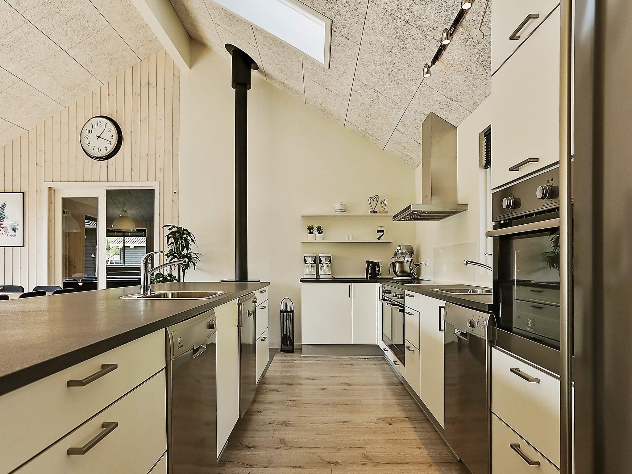 I det gennemtænkte køkken er der 2 køleskabe, 1 fryser og 3 opvaskemaskiner. Spise-/opholdsrum er smagfuldt indrettet med fladskærms-tv, dvd-afspiller, høj barnestol, sofaafdeling og brændeovn. 8 soveværelser med boksmadrasser i alle sengene. Derudover 2 store og rummelige hemse. En sovehems med boksmadrasser og en legehems med sækkestole og tv.