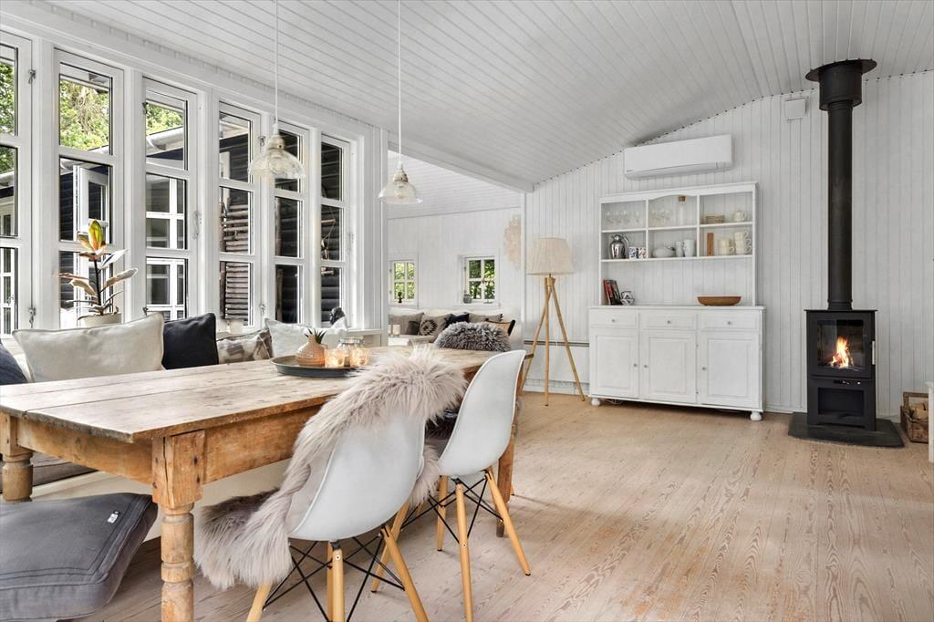 I sommerhuset mødes I af en lys og afslappet atmosfære, der gør det let at falde ned i ferietempo. Stuen og køkkenet ligger i åben forbindelse med hinanden, så samtalerne kan flyde frit, mens nogen dækker bord, og andre tilbereder maden. De store vinduespartier lukker lyset ind og skaber en let og luftig stemning, og gennem terrassedøren kan I træde direkte ud i solen. Soveværelserne giver alle mulighed for at trække sig tilbage og finde ro, og badeværelset er enkelt og praktisk, når I kommer hjem efter en dag ved stranden.