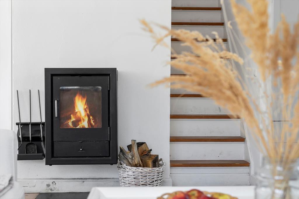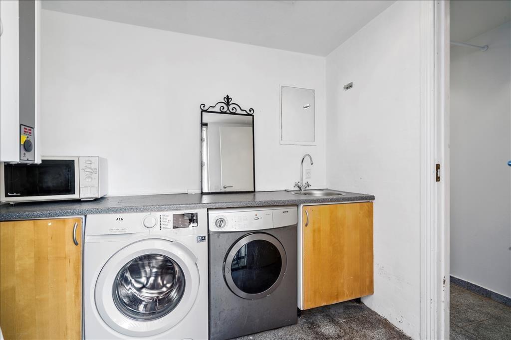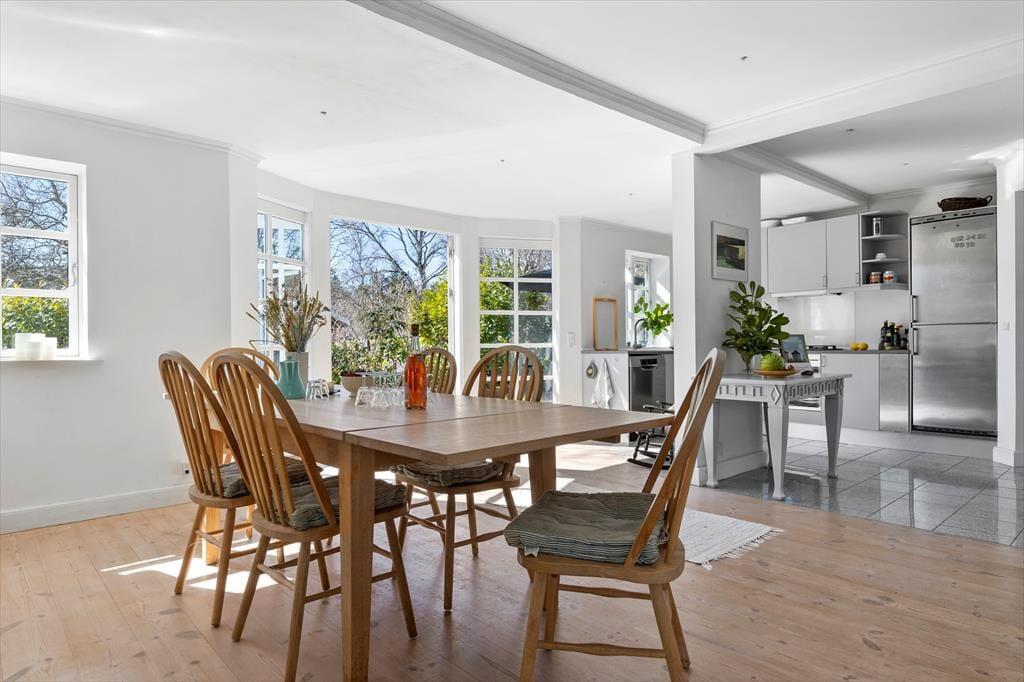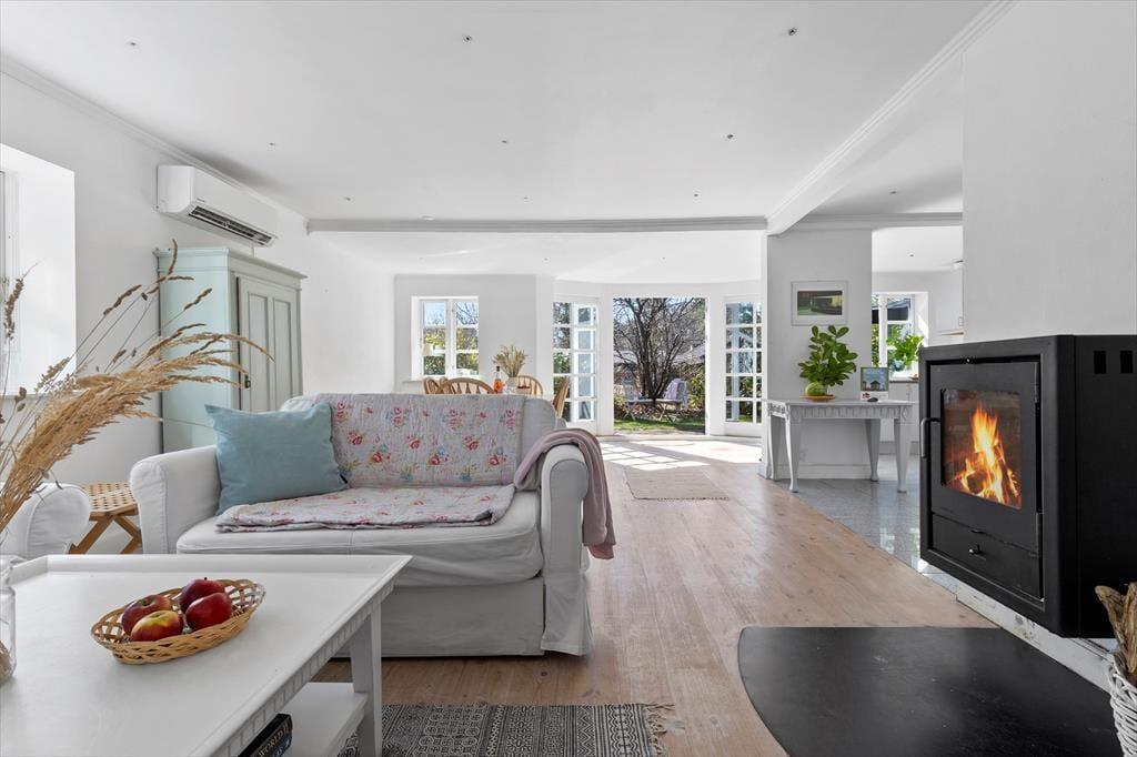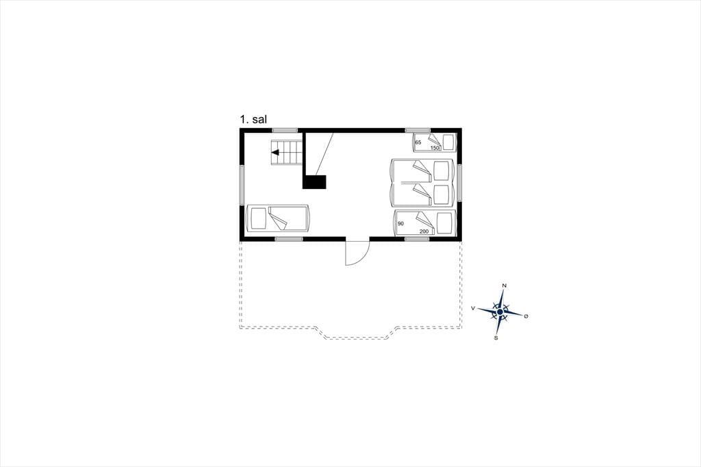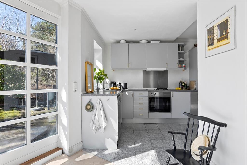 Entre. Stort åbent køkken-alrum med køkken, spiseplads og siddegruppe. Direkte udgang til terrassen. Badeværelse med brusebad. Der er trappe fra stuen til 1. sal