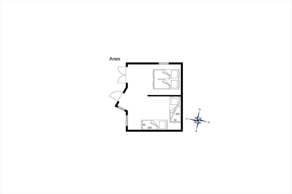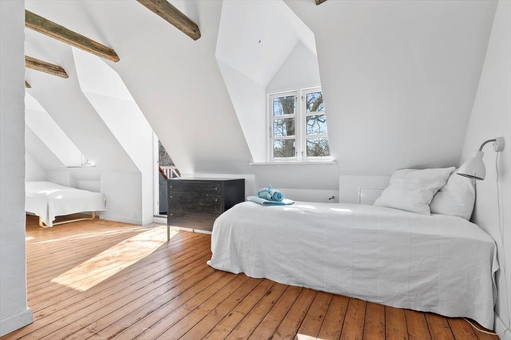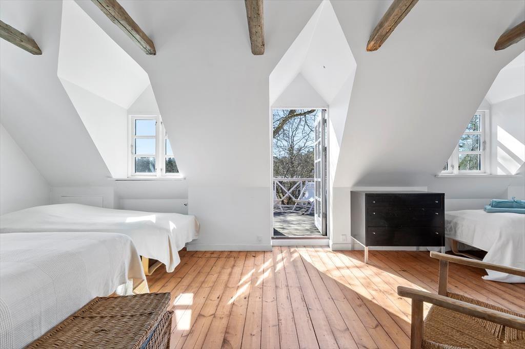 Anneks med dobbeltseng, køjeseng og enkeltseng.