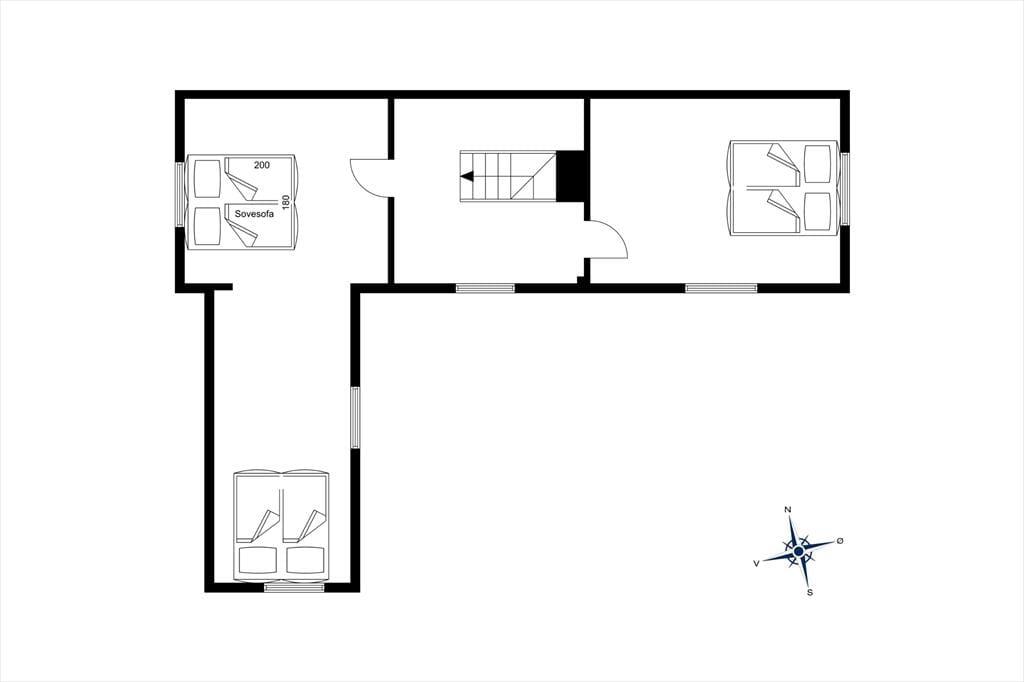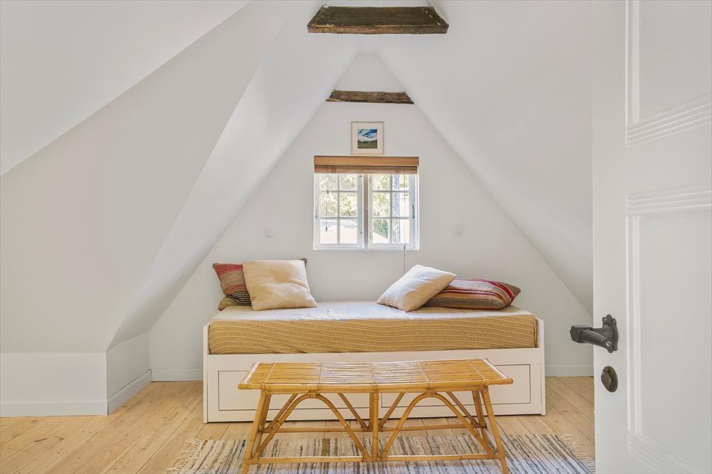 På førstesalen finder du to soveværelser, der indbyder til en god nattesøvn efter en dag fyldt med oplevelser. Det ene soveværelse har en dobbeltseng, mens det andet byder på både en dobbeltseng og en ekstra udtræksseng, der kan omdannes til endnu en dobbeltseng – ideelt til børnefamilier eller vennepar.