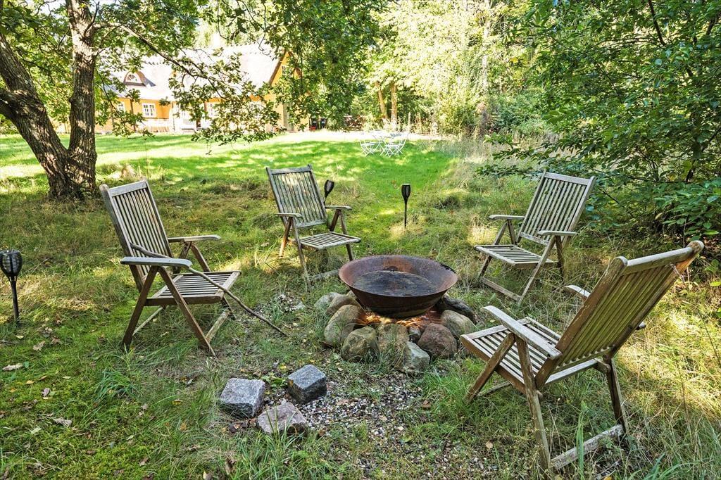 Sommerhuset ligger på en stor grund, der indbyder til udendørsliv og hyggelige stunder i det fri. I haven kan du tænde op i bålpladsen og samles omkring flammerne, mens du rister skumfiduser eller laver snobrød med børnene. Her er plads til leg og afslapning i smukke, grønne omgivelser.