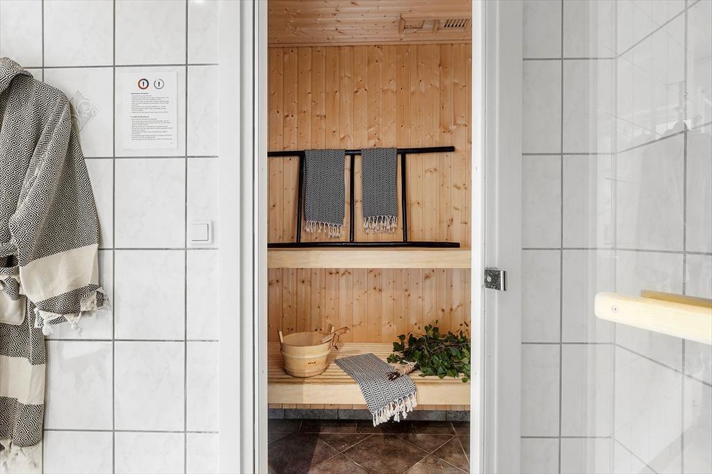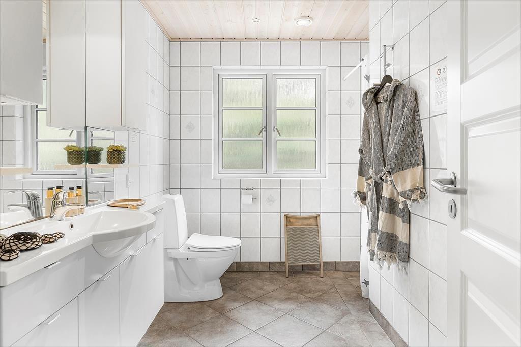 Der er to badeværelser i huset, hvoraf det ene har et indendørs spabad og sauna. Dette giver mulighed for ultimativ afslapning og velvære efter en dag fuld af aktiviteter.